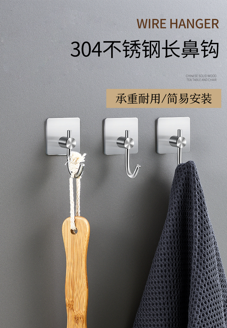 不锈钢挂钩胶贴强力粘墙壁壁挂厨房挂勾无痕贴免打孔粘钩衣浴室勾