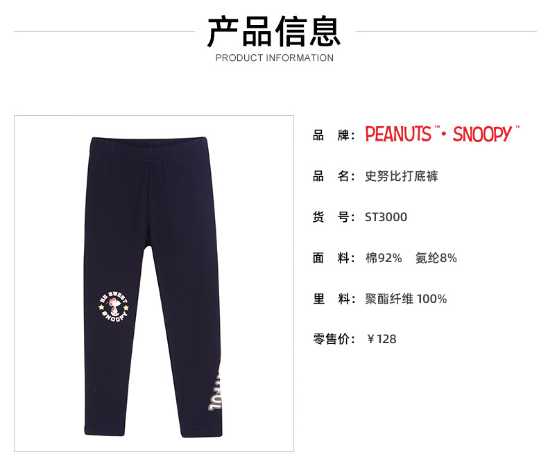 史努比女童打底裤冬装外穿女宝宝加绒加厚儿童装洋气秋冬装长裤子