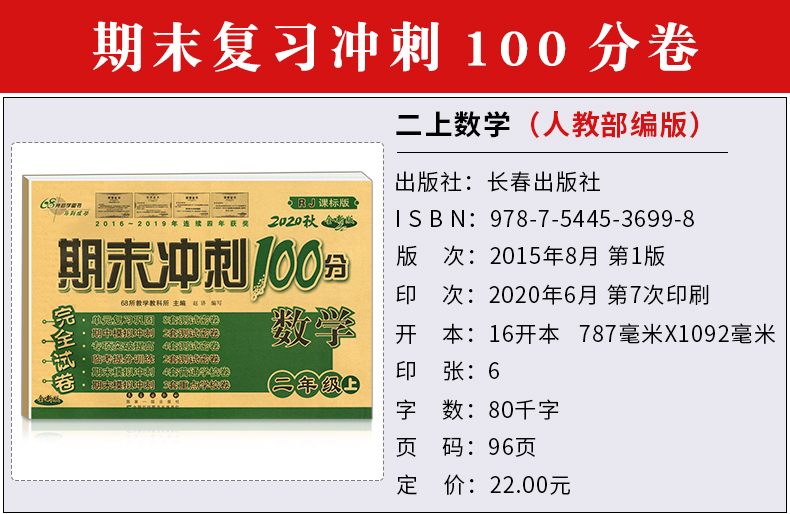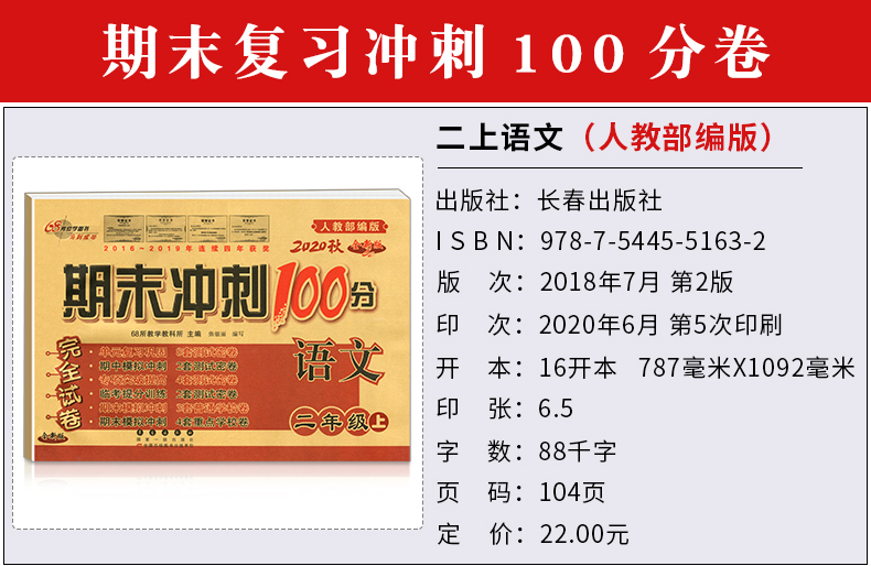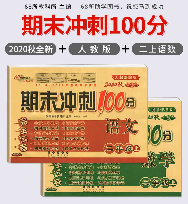2019新期末冲刺100分二年级上册试卷全套语文数学人教部编版 小学2年级同步训练辅导资料练习题册单元期末复习模拟测试卷考试卷子