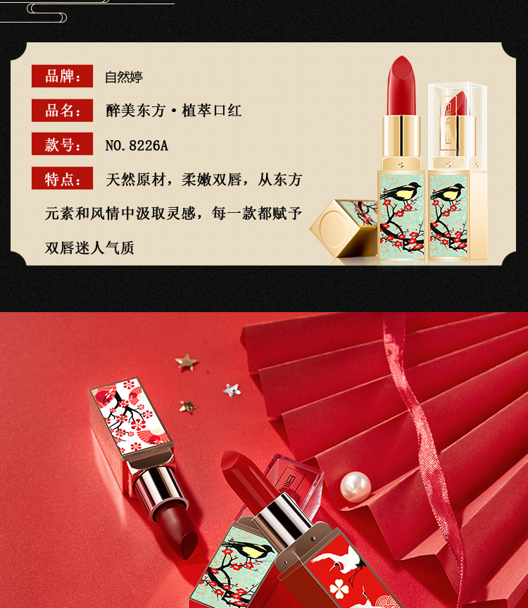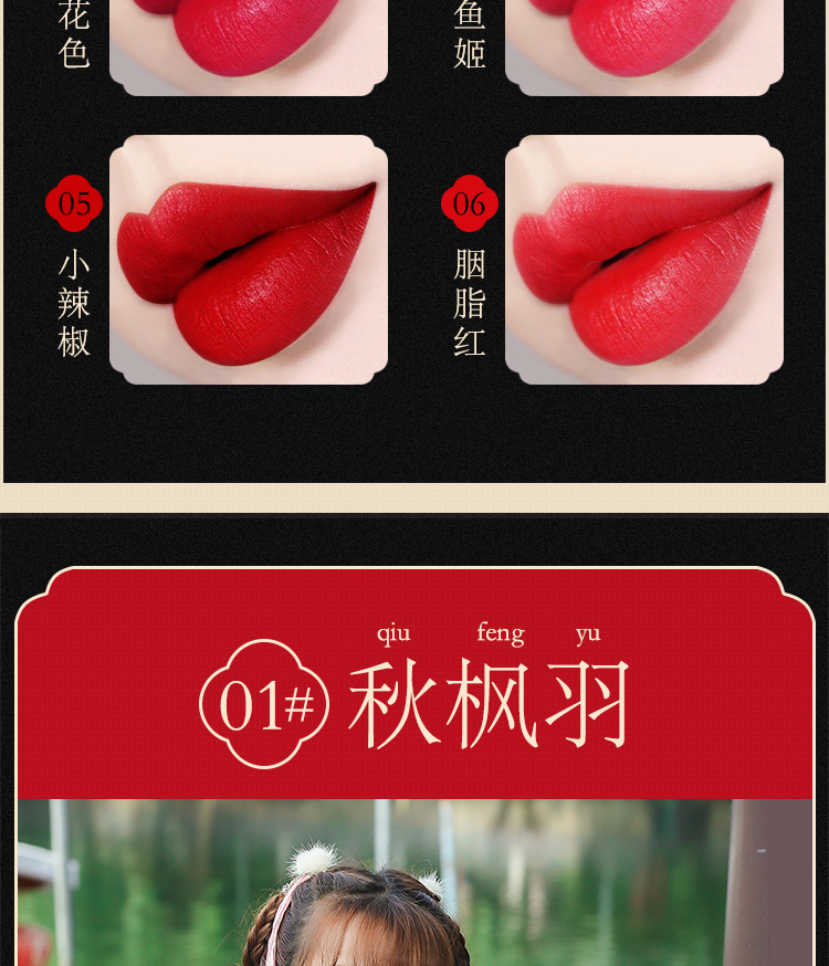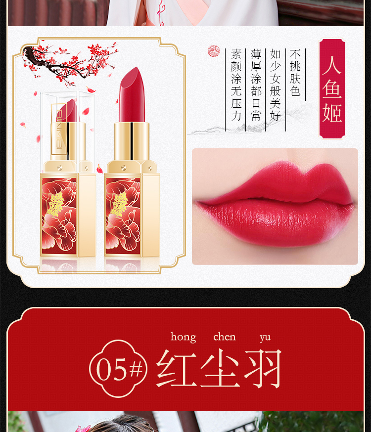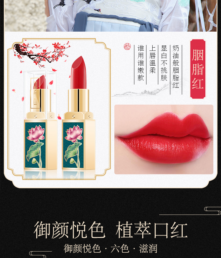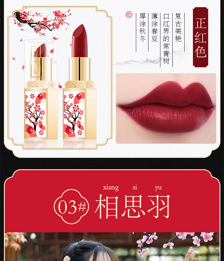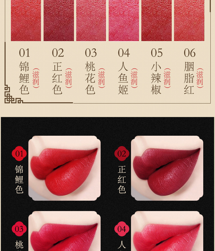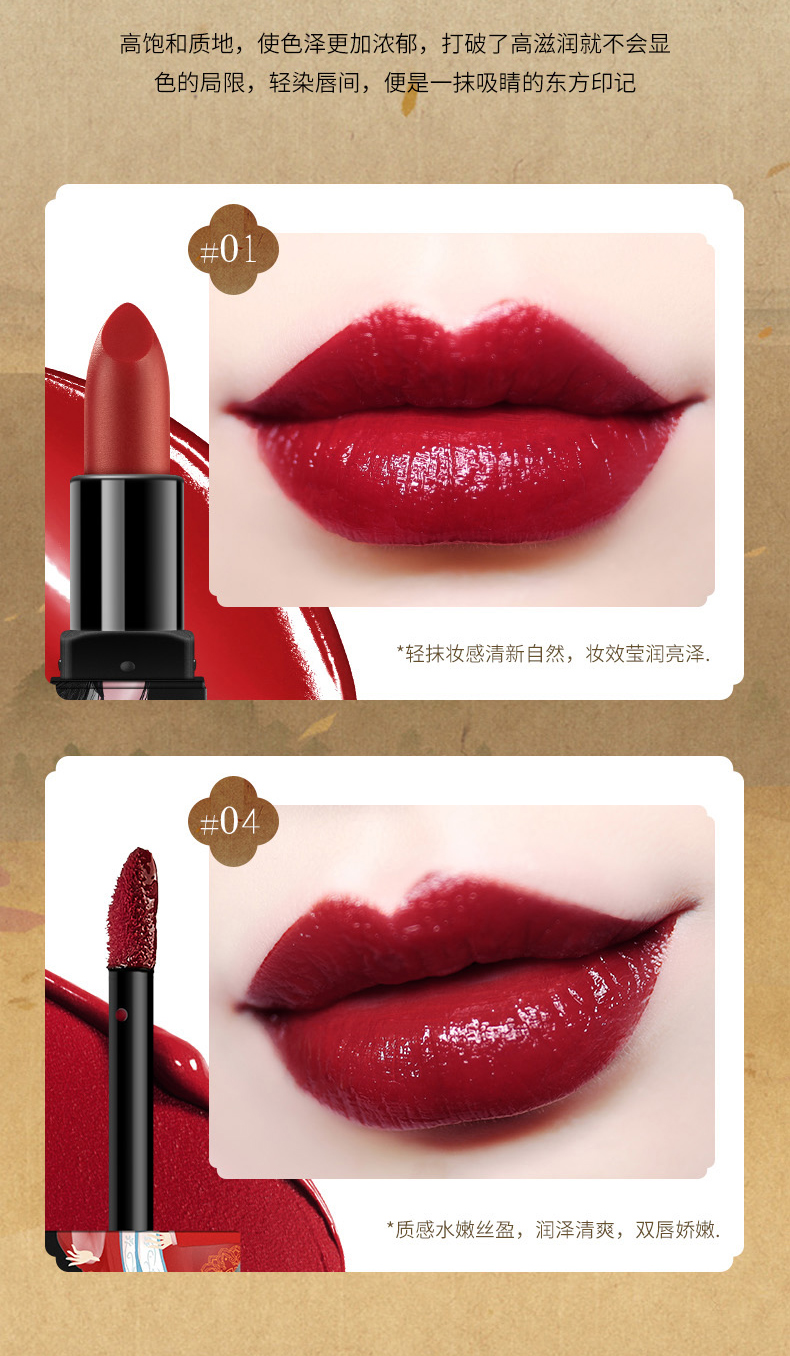 【6色可选】国韵风情,尽显东方传承之美,轻盈丝绒质地,丝润柔滑,持久保湿,满满的中国风,尽情绽放流光溢彩动人唇妆!