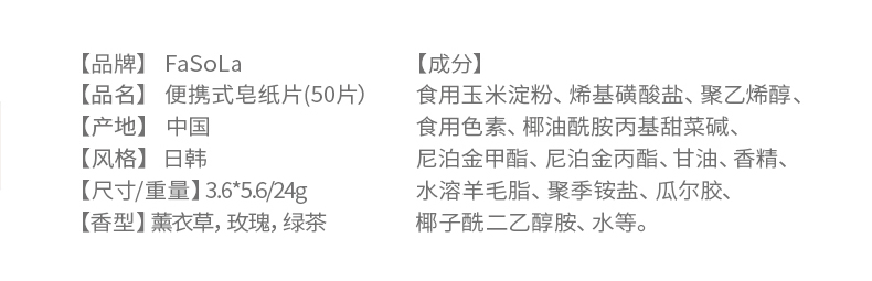 FaSoLa随身香皂片玫瑰香型学生一次性肥皂纸旅行便携式可爱肥皂片