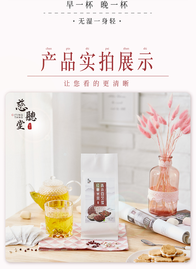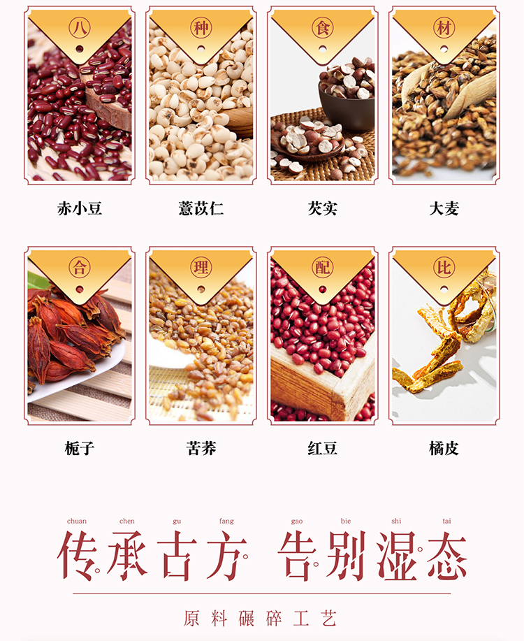 三代中医世家出品,北京卫视养生堂推荐!中医院研究员院长推荐,茯苓、莲子、山药、芡实、赤小豆、甘草、重瓣红玫瑰,多种好料组合,摆脱身体湿气,让你每日神清气爽!