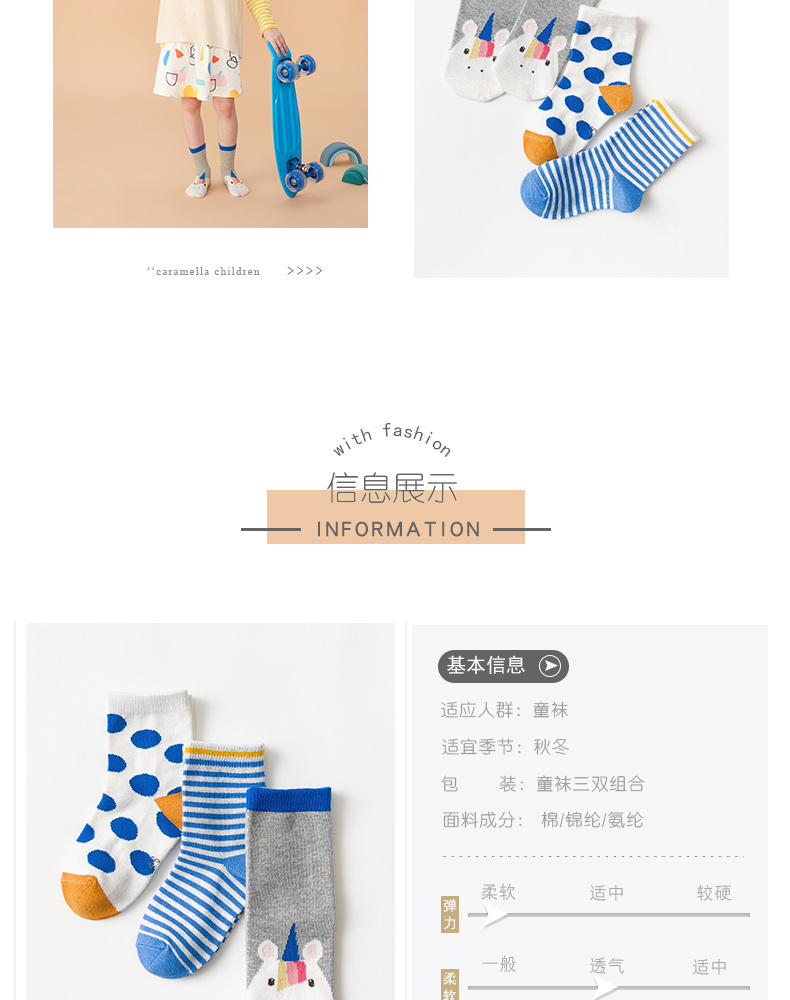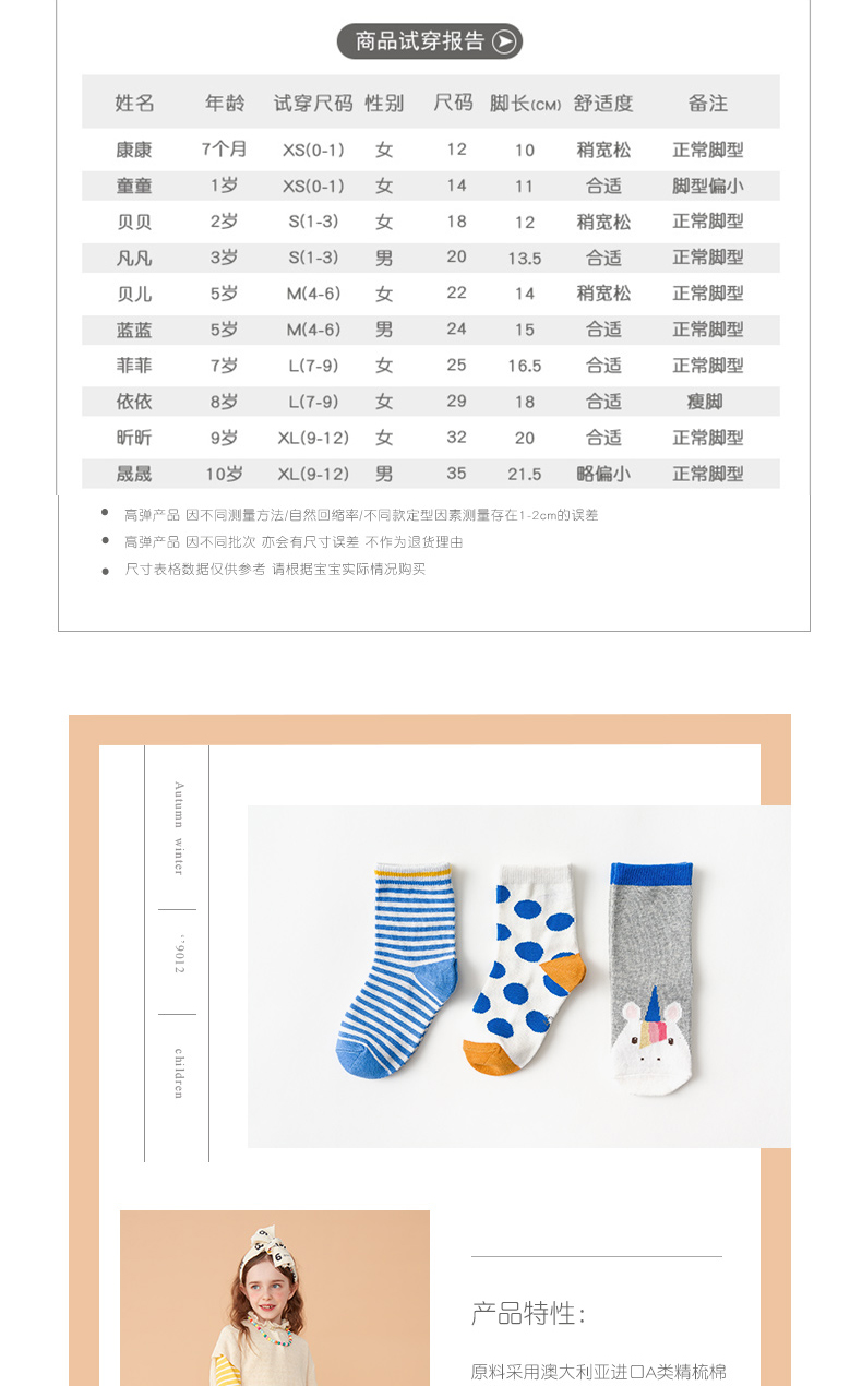 caramella 宝宝袜子纯棉中筒袜秋冬地板袜新生儿袜子男童女童袜子