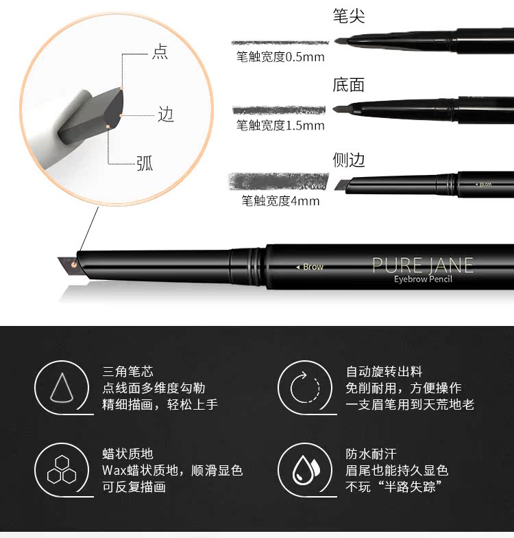 璞珍三角眉笔一字眉初学者防水不脱色自然持久画眉不晕染