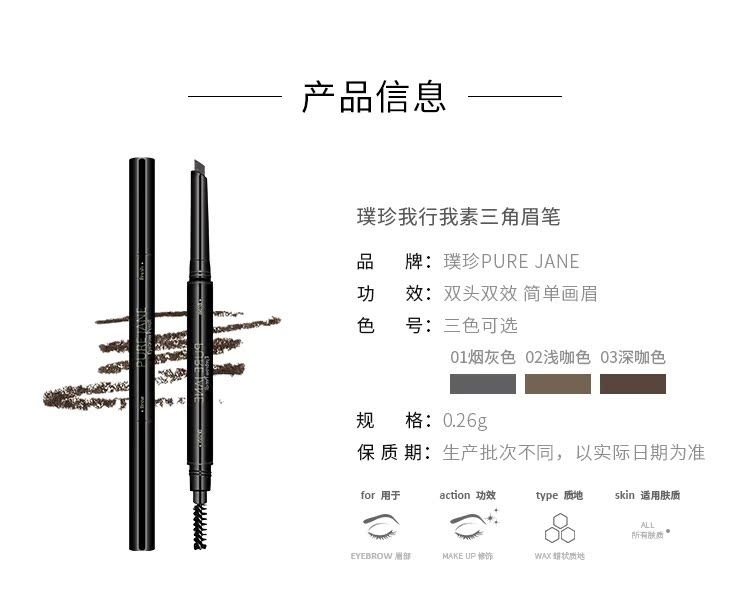 【璞珍】我行我素三角眉笔,双头双效,简单画眉。一笔成型,手残党也可以轻松画眉。遇见一只好眉不容易,新手一秒变画眉达人。国产认可检测,孕妇可以用。【赠运费险】