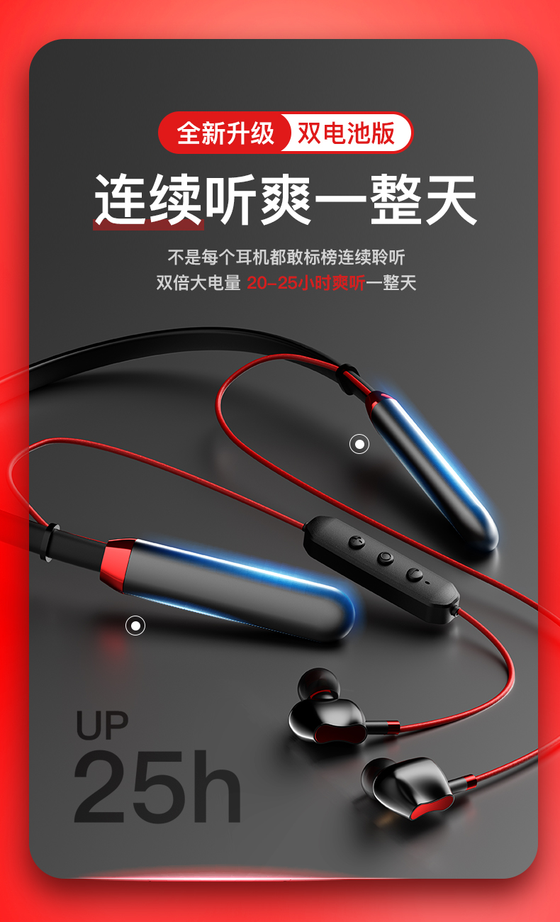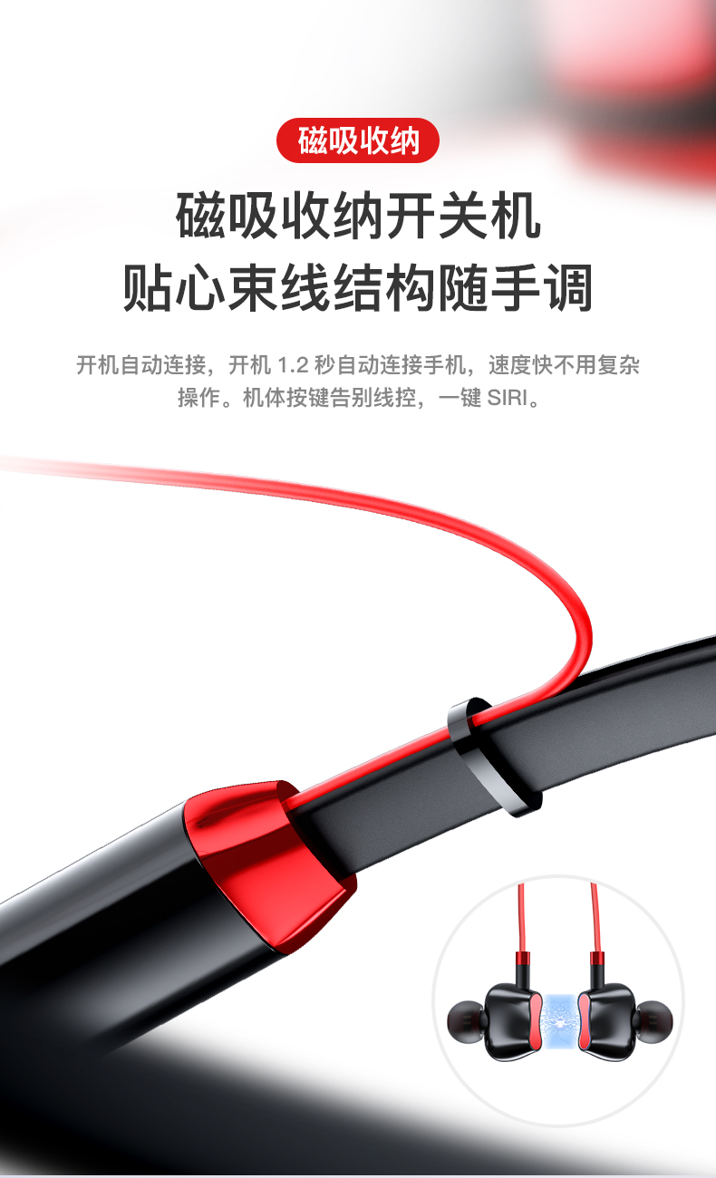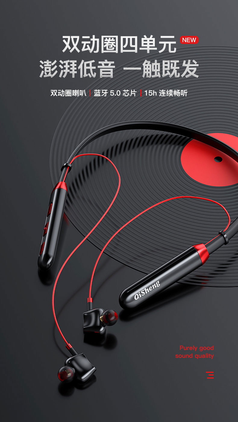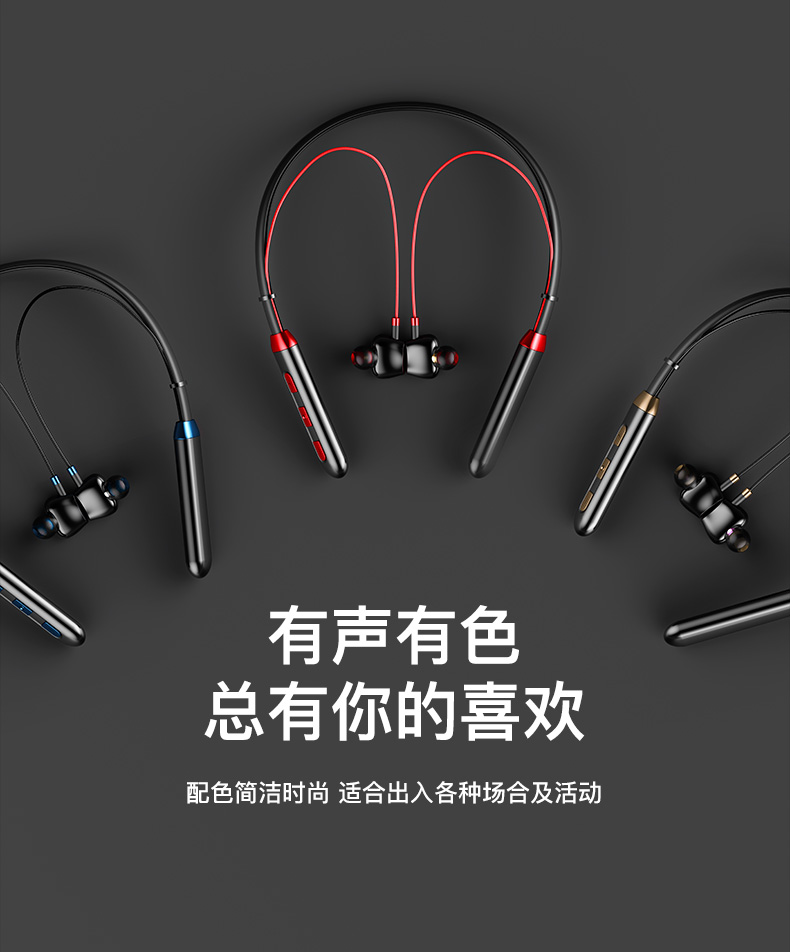 双动圈四喇叭,蓝牙5.0,HIFI震撼低音!【专柜同款】双耳震撼音效!挂脖式超长待机续航,强劲低音效果~狂甩不掉的那种,运动跑步达人必备!三色可选【赠运费险】