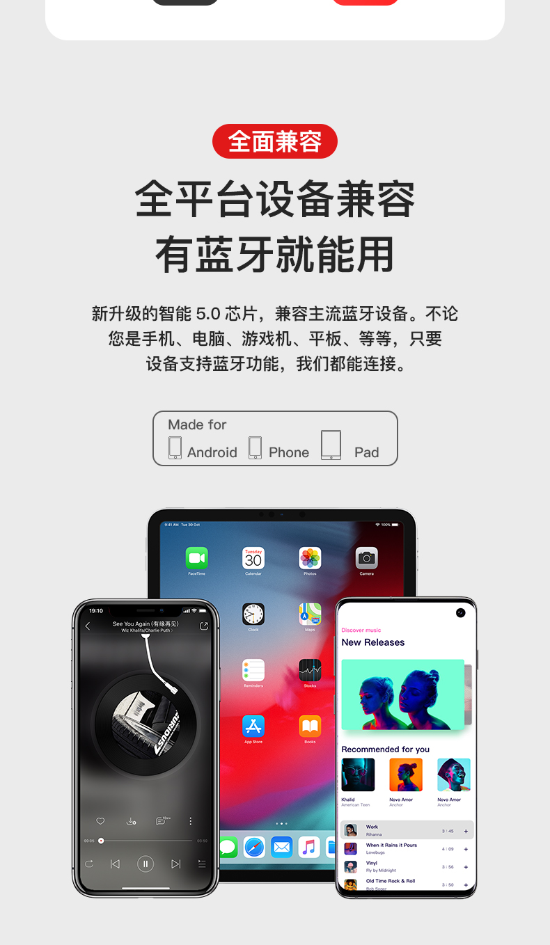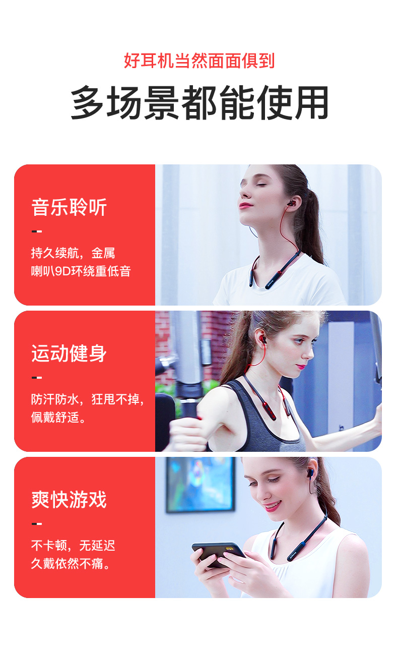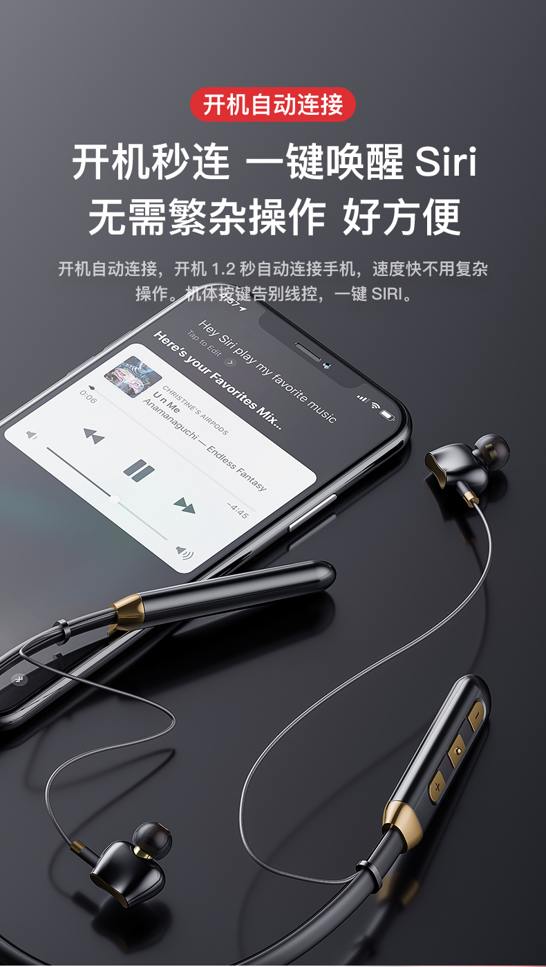 双动圈四喇叭,蓝牙5.0,HIFI震撼低音!【专柜同款】双耳震撼音效!挂脖式超长待机续航,强劲低音效果~狂甩不掉的那种,运动跑步达人必备!三色可选【赠运费险】