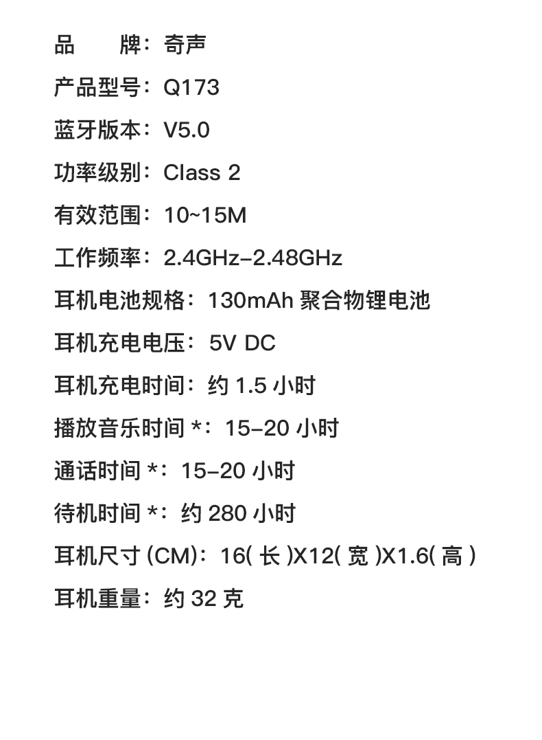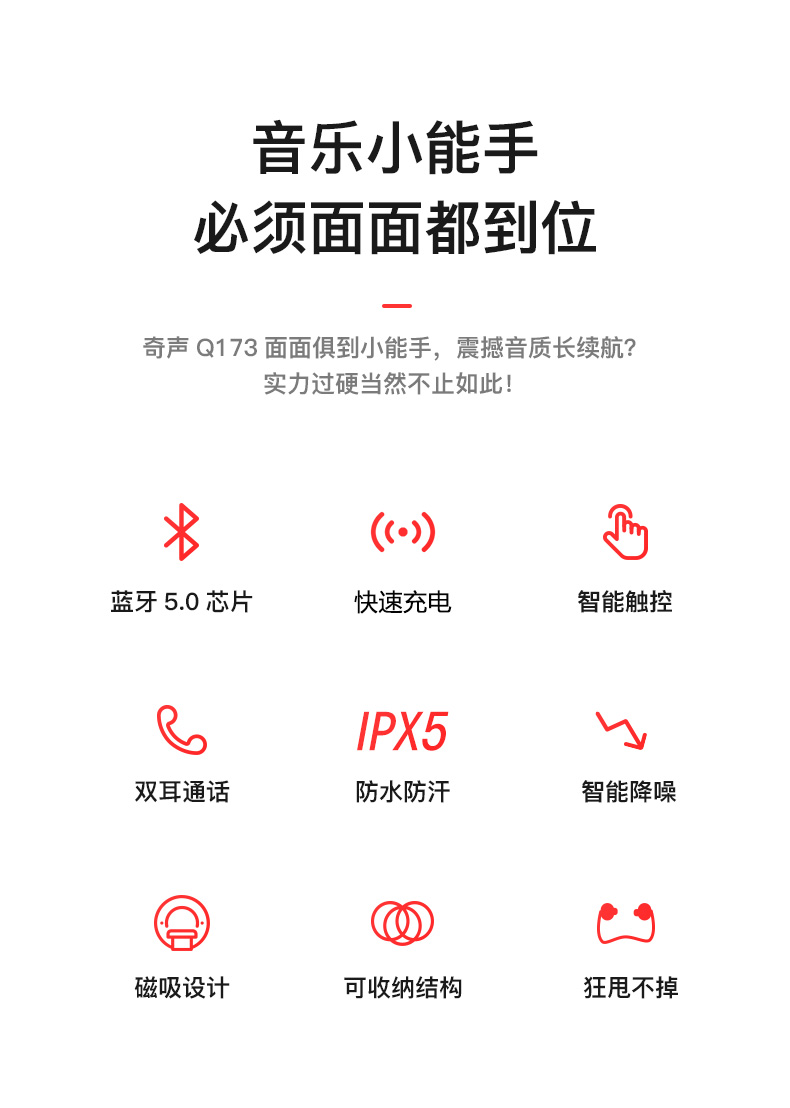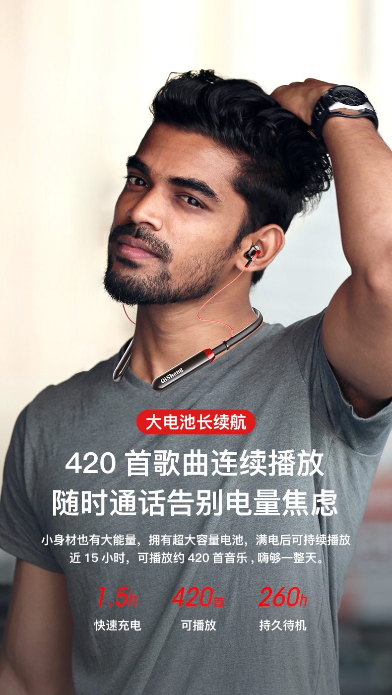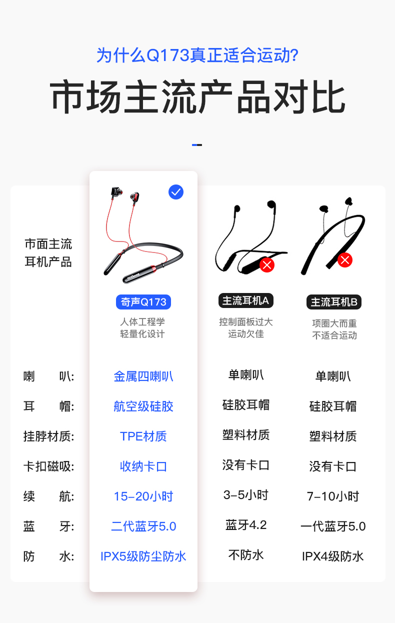 奇声Q173蓝牙耳机运动跑步双耳挂脖式超长待机续航无线入塞式适用于苹果华为手机安卓vivo通用入耳式耳机