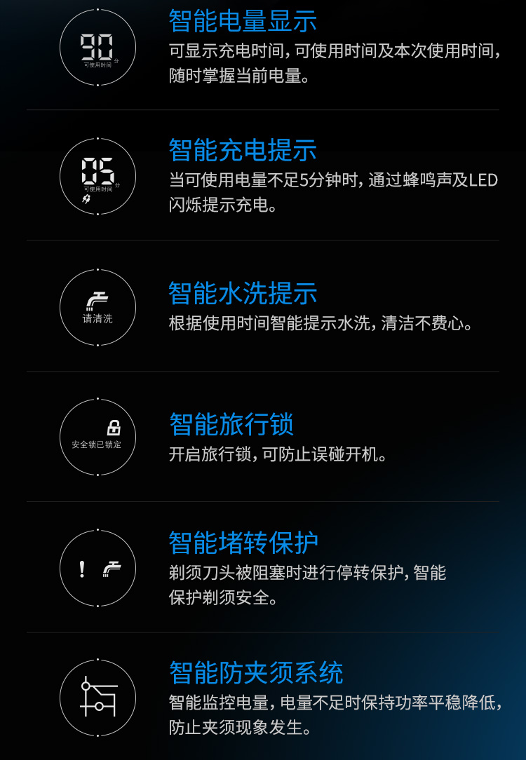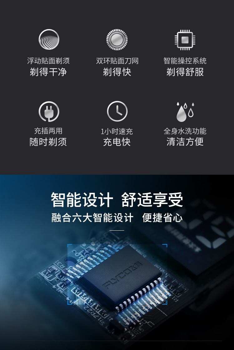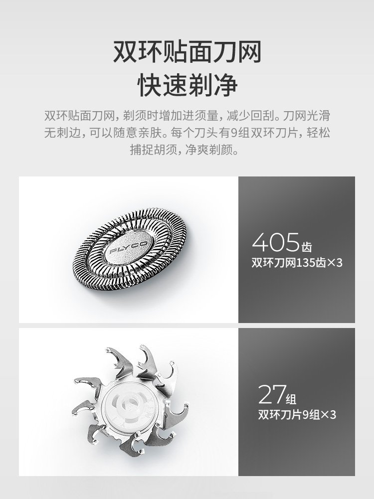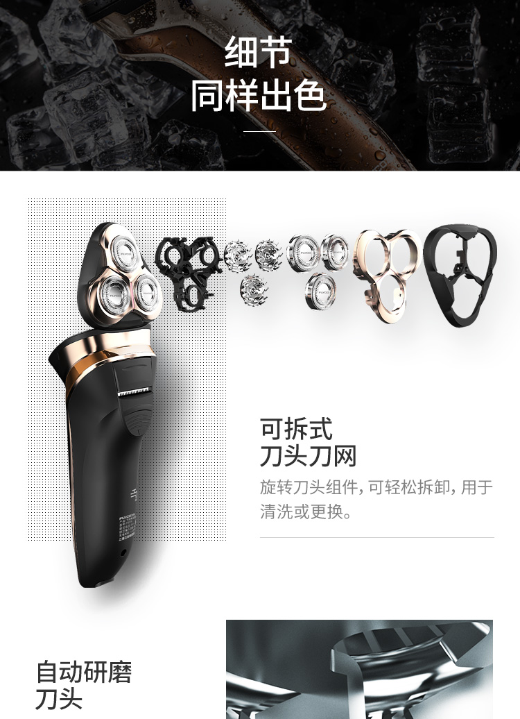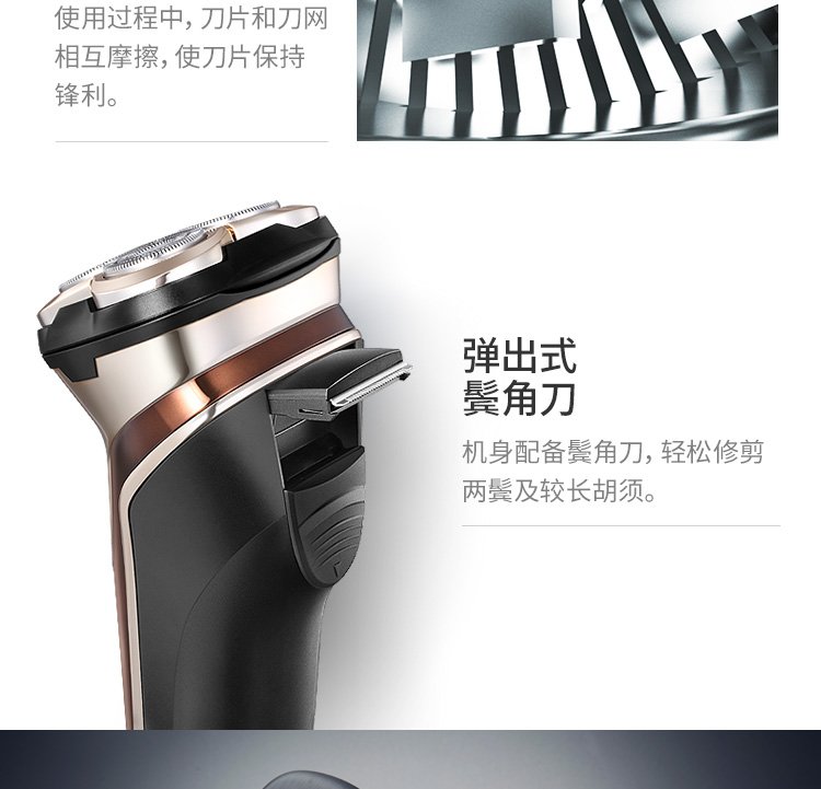 天猫品质保障,全国联保,三头浮动,双环贴面刀网,人体工学设计,不夹须,时尚外观,男士必备。