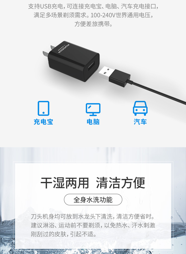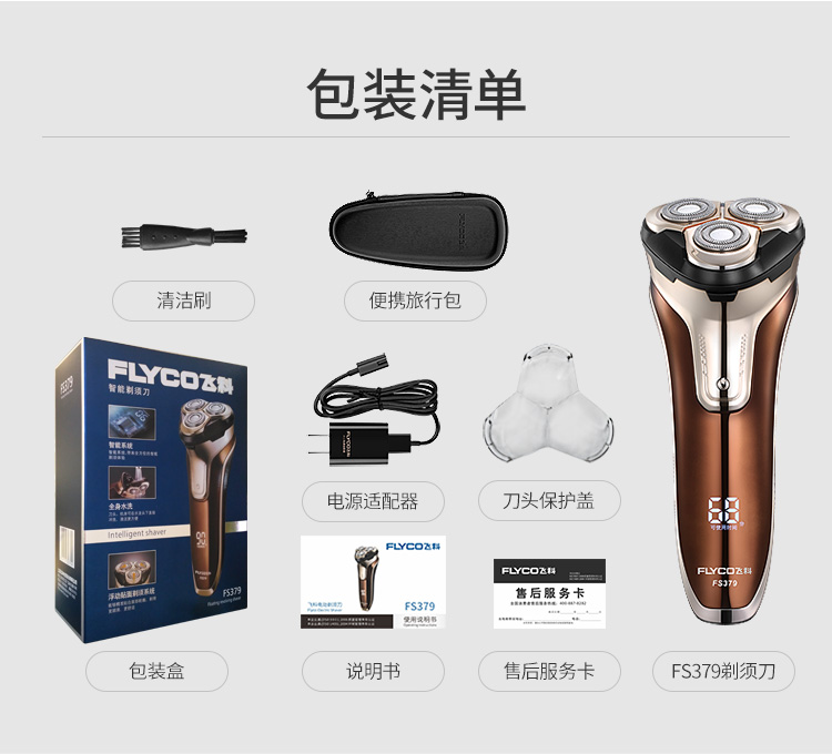 Flyco/飞科FS379剃须刀电动全身水洗飞科剃须刀男充电式刮胡刀