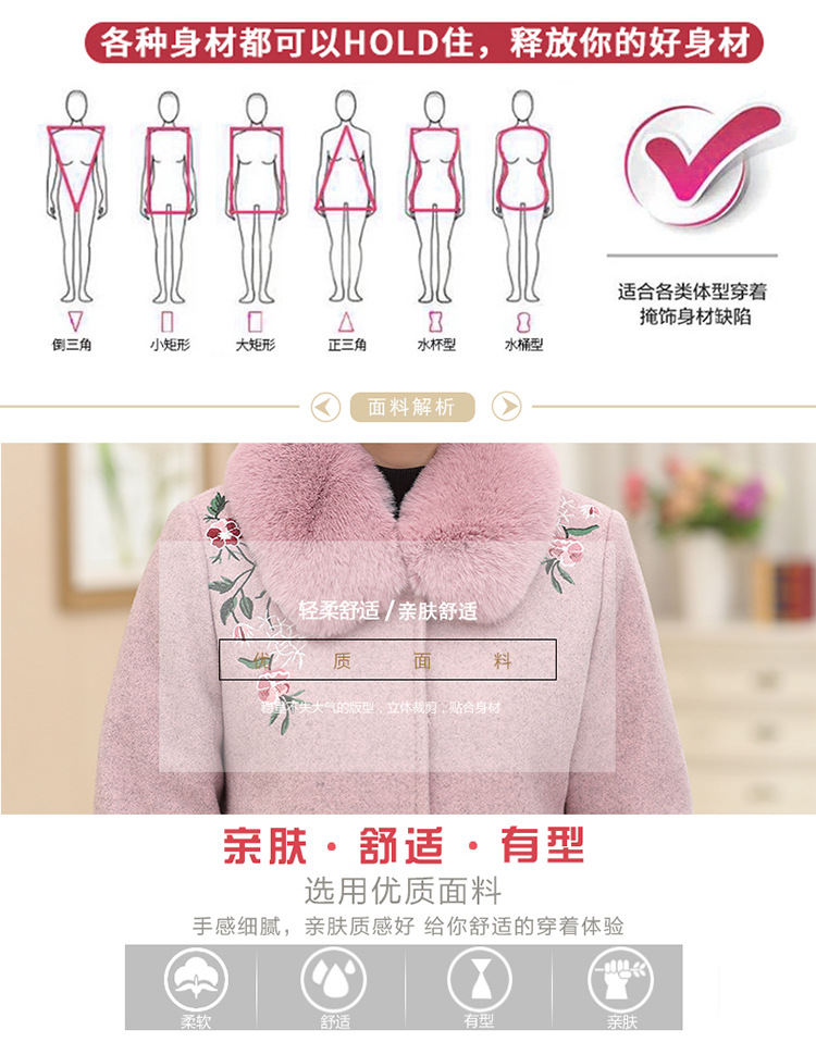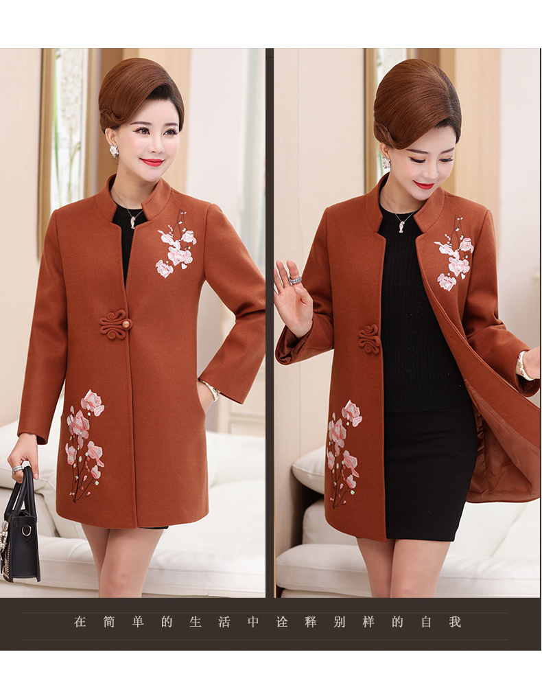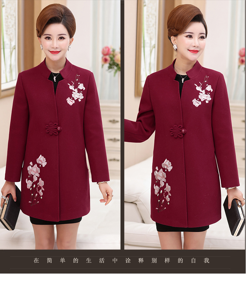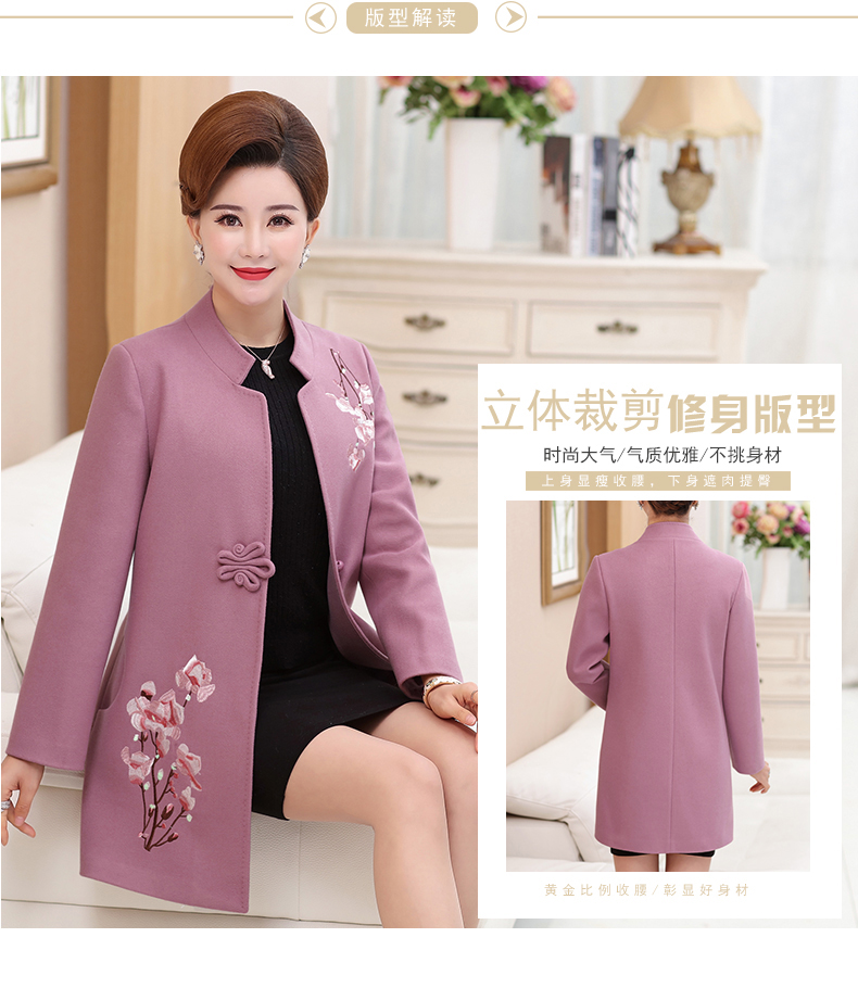 中老年女装秋装新款大衣40-50岁中年妈妈装冬装中长款毛呢外套