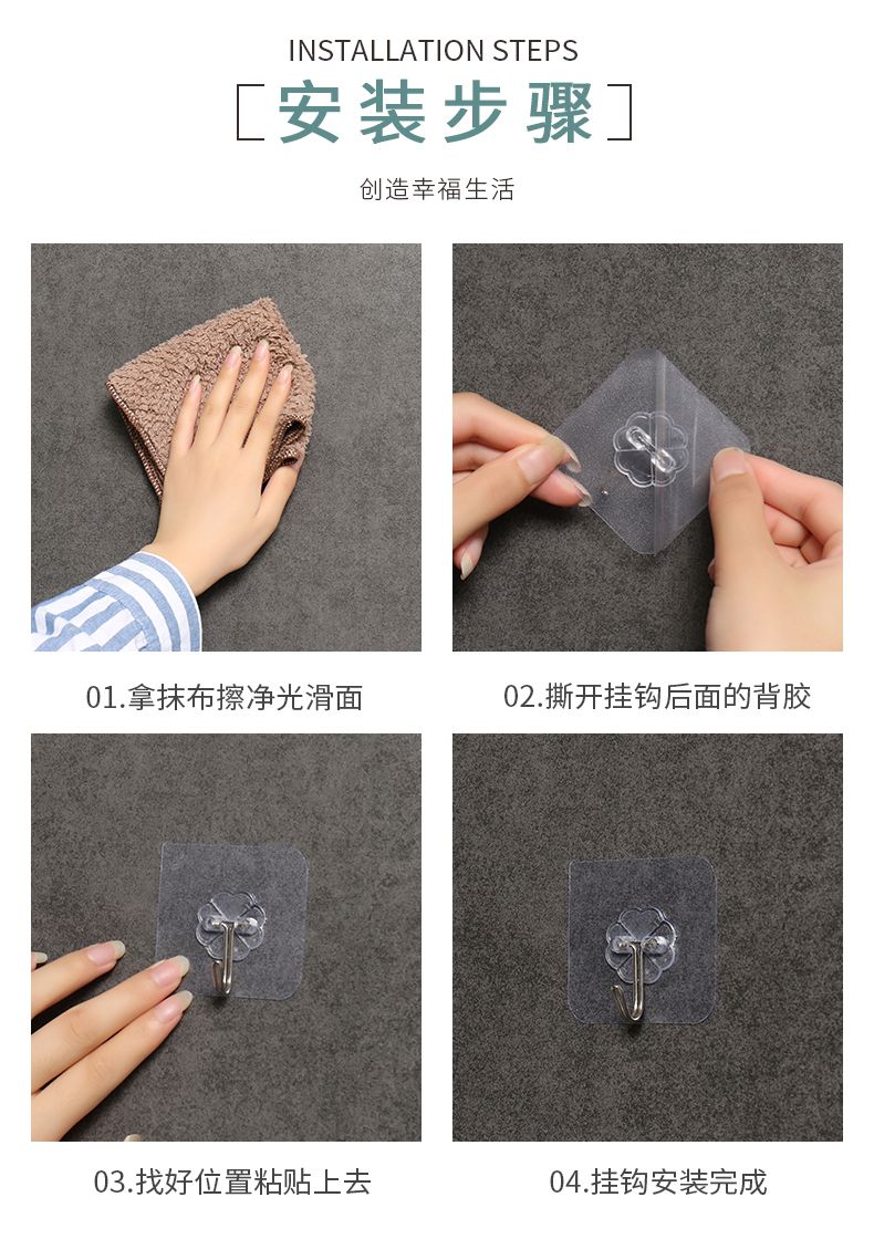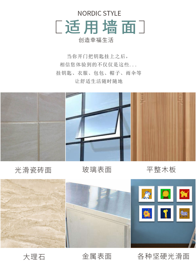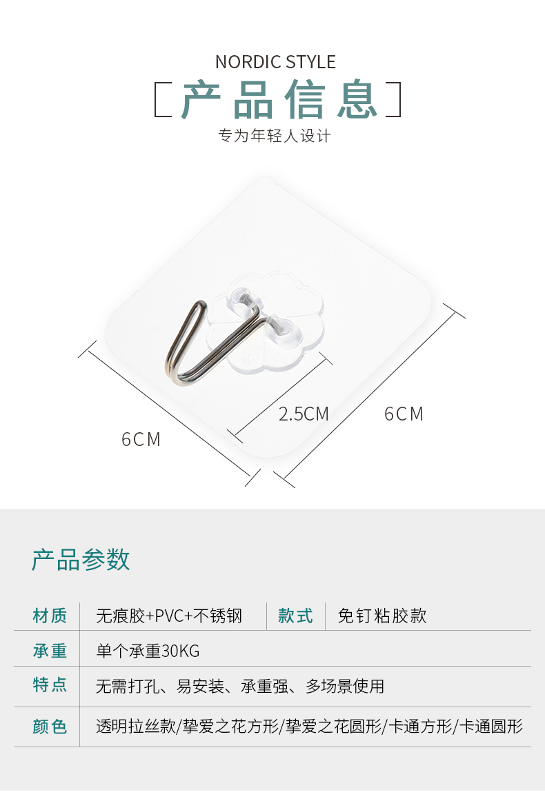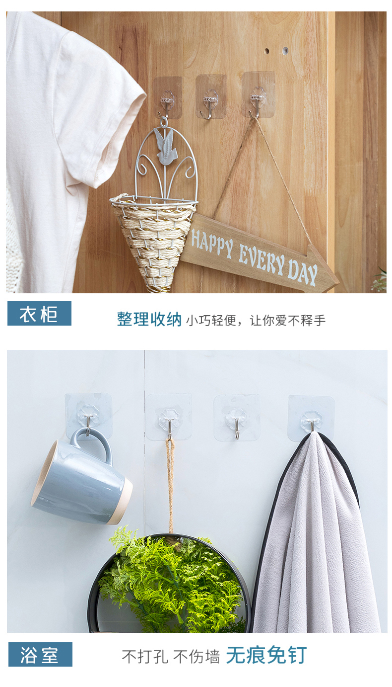 免钉,不伤墙面,超强承重,防水防油不脱落,厨房/卫生间/卧室都适用,家居必备~