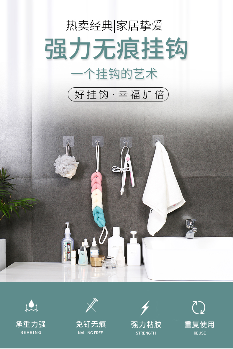 强力粘胶挂勾墙壁挂承重吸盘卫浴厨房卧室无痕粘贴门后免打孔挂钩