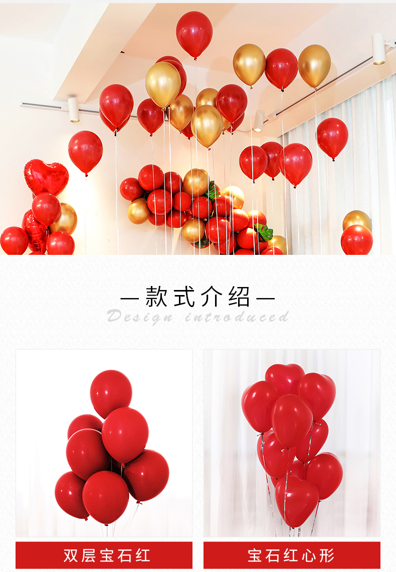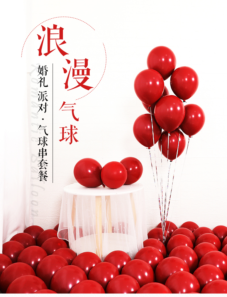 网红婚房装饰宝石红色气球结婚庆礼生日浪漫新房卧室场景布置用品