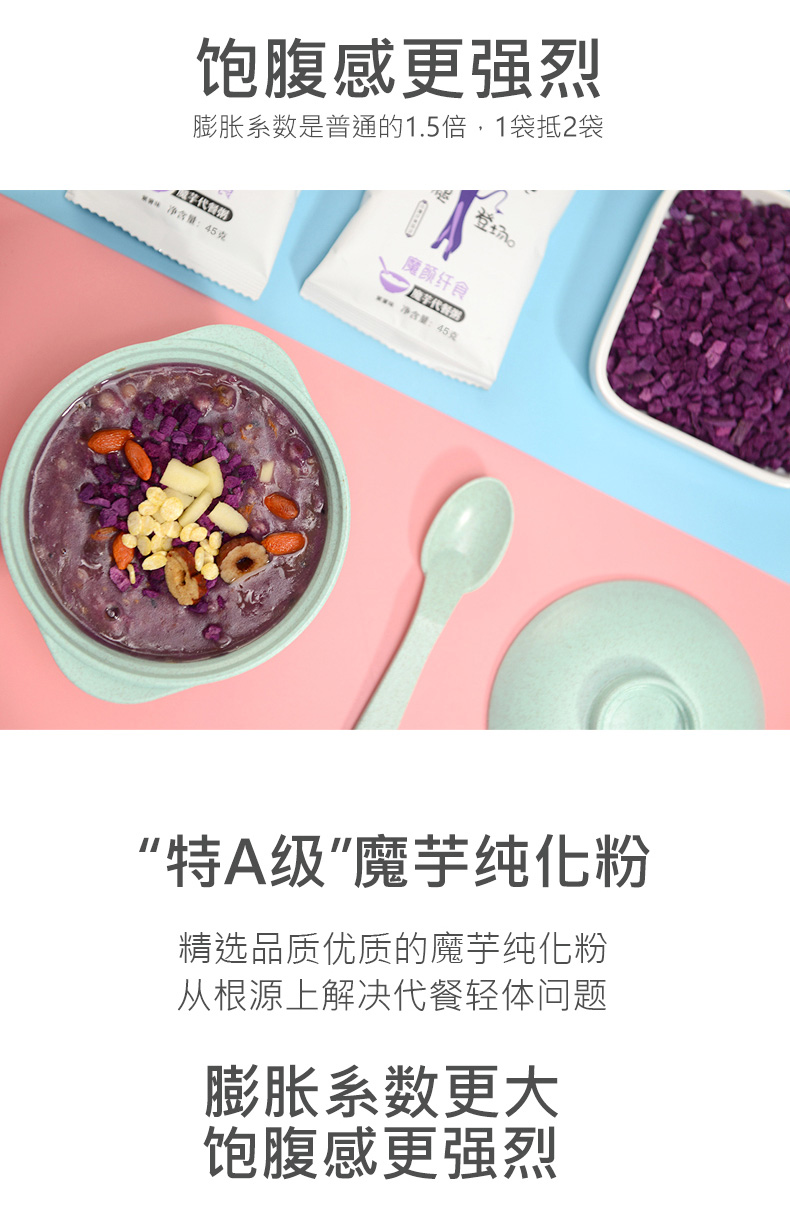 魔颜黑芝麻紫薯粉魔芋代餐粥黑米燕麦饱腹食品冲泡五谷杂粮代餐粉