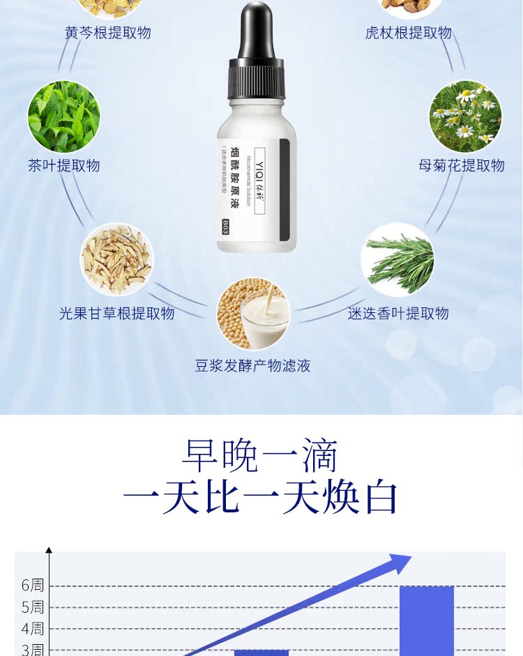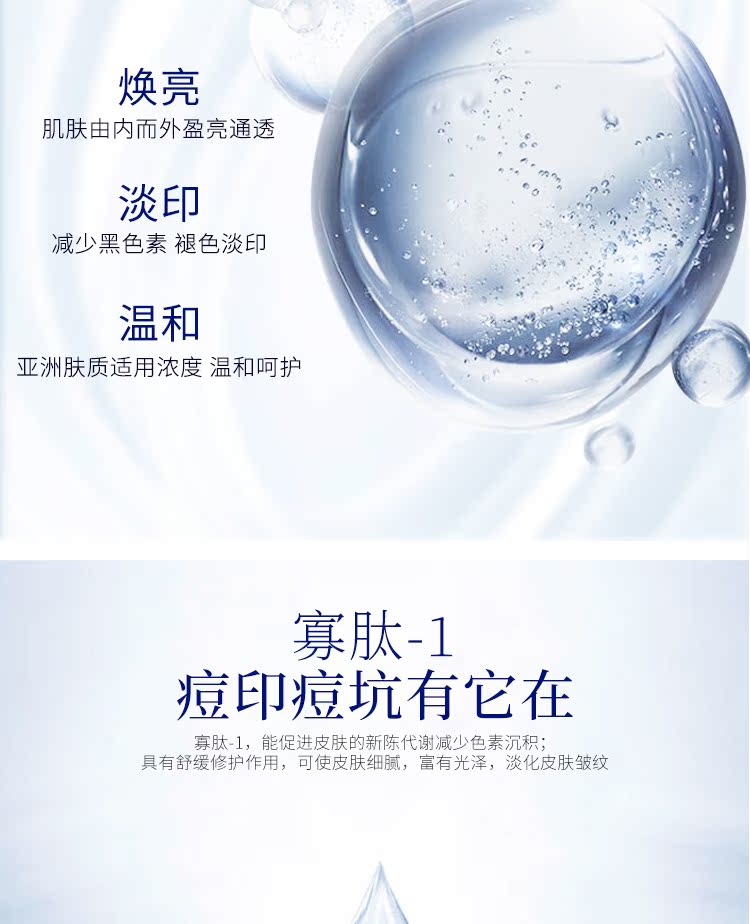 烟酰胺含寡肽原液,提亮肤色,收缩毛孔,深层渗透,舒缓修护,祛痘印祛痘坑,细腻弹滑,淡化瑕疵,补水保湿,使肤色紧致柔滑、清透亮丽!美白效果超牛,15天让你白成一道光