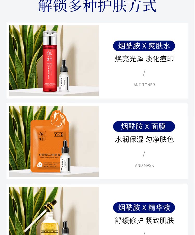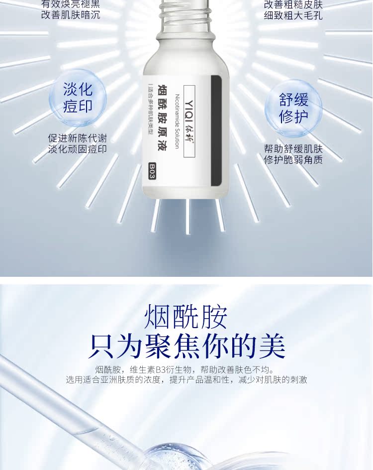依祈烟酰胺原液精华液提亮肤色补水祛黄抗痘修护抗衰收缩毛孔男女