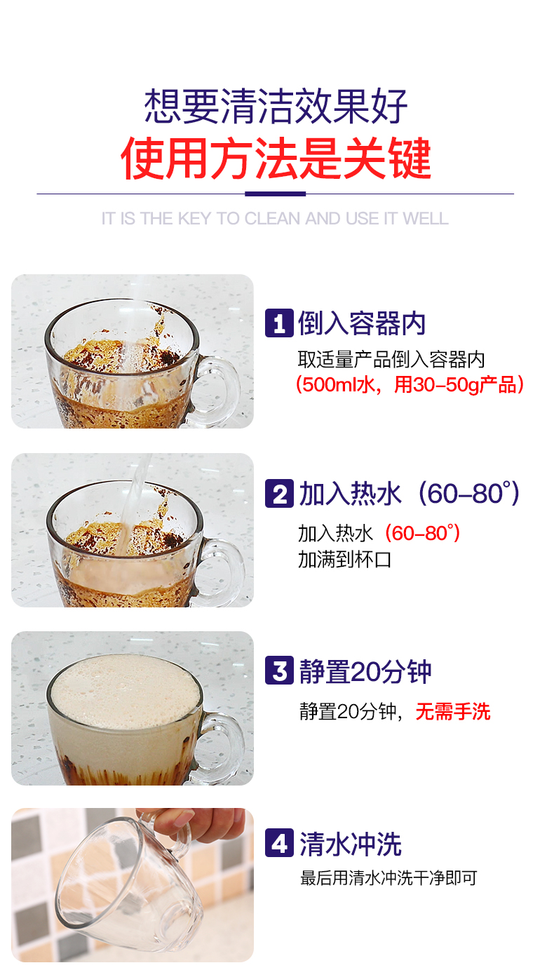 【拍二发三】3分钟换新杯;活氧去茶渍,健康无残留;高效清洁茶渍,水果渍、奶渍,红酒渍;免刷洗,自动分解污渍;无有害成分,安全环保【赠运费险】