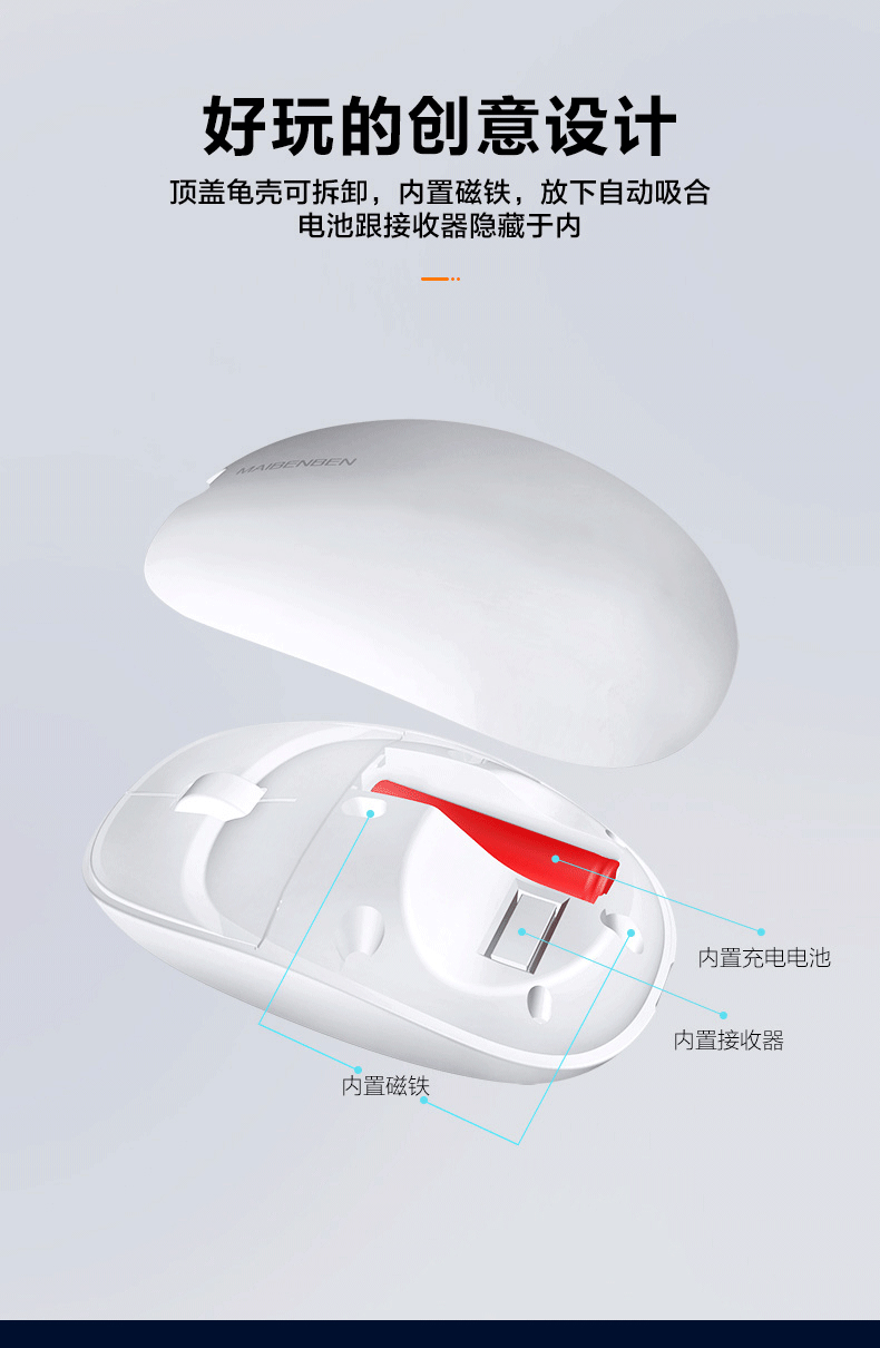 全球600万粉丝认可品牌,麦本本无线鼠标,笔记本电脑家用办公专用,男女生小巧可充电可拆卸款鼠标,可充电可拆卸款无线鼠标。