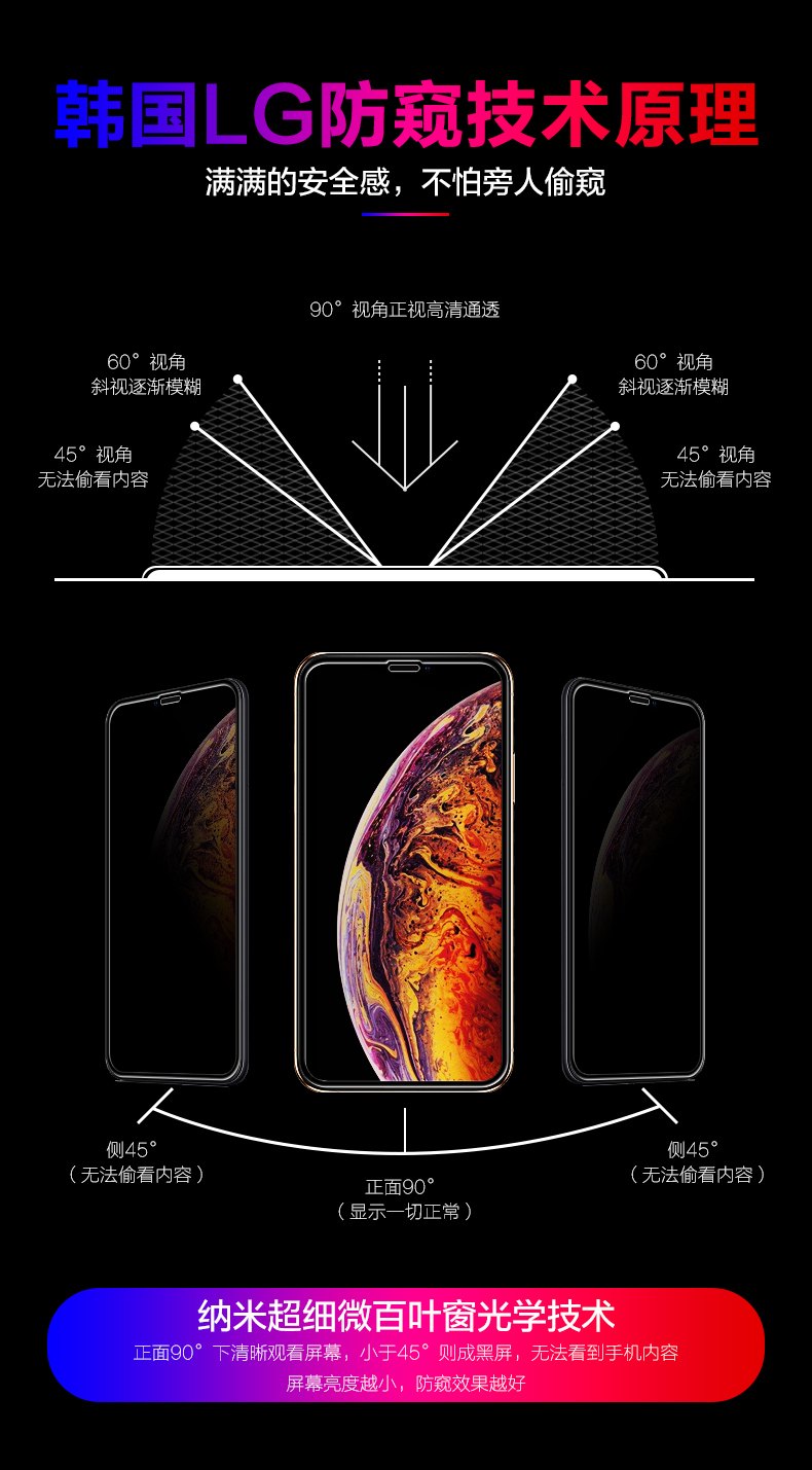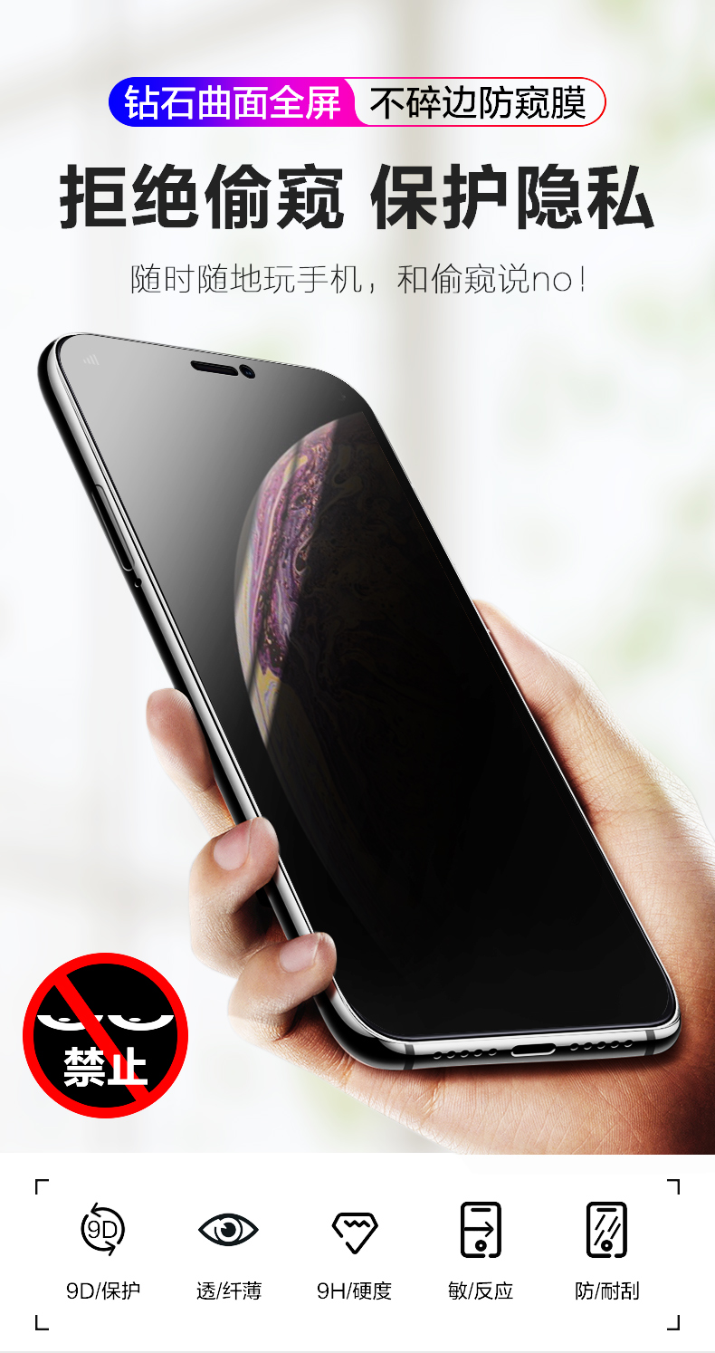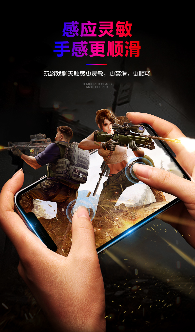 专为苹果手机量身定制,拒绝偷窥,保护隐私,耐磨防刮,原屏高清,自然视觉,电竞级钢化膜,不留指纹,手感超爽!