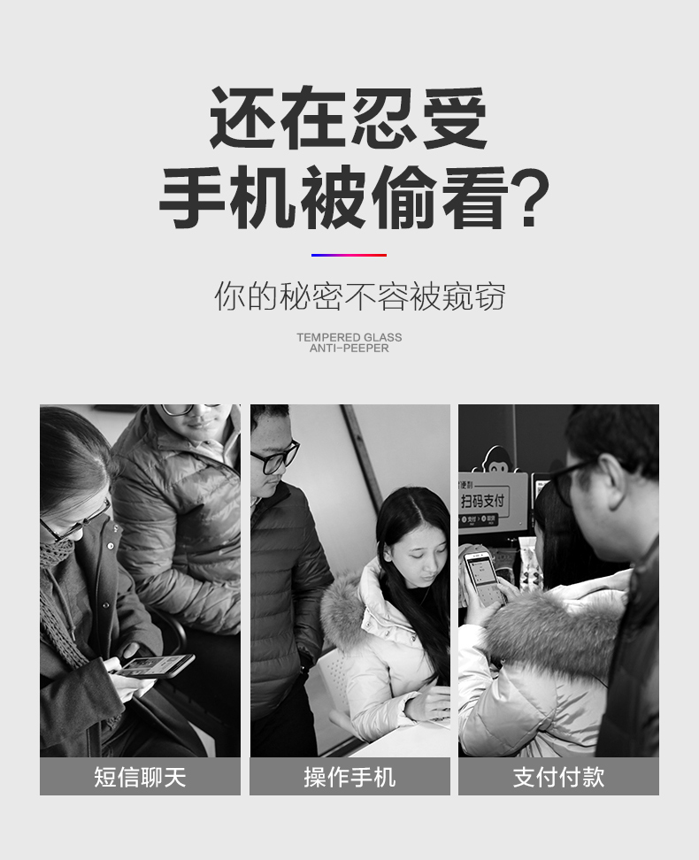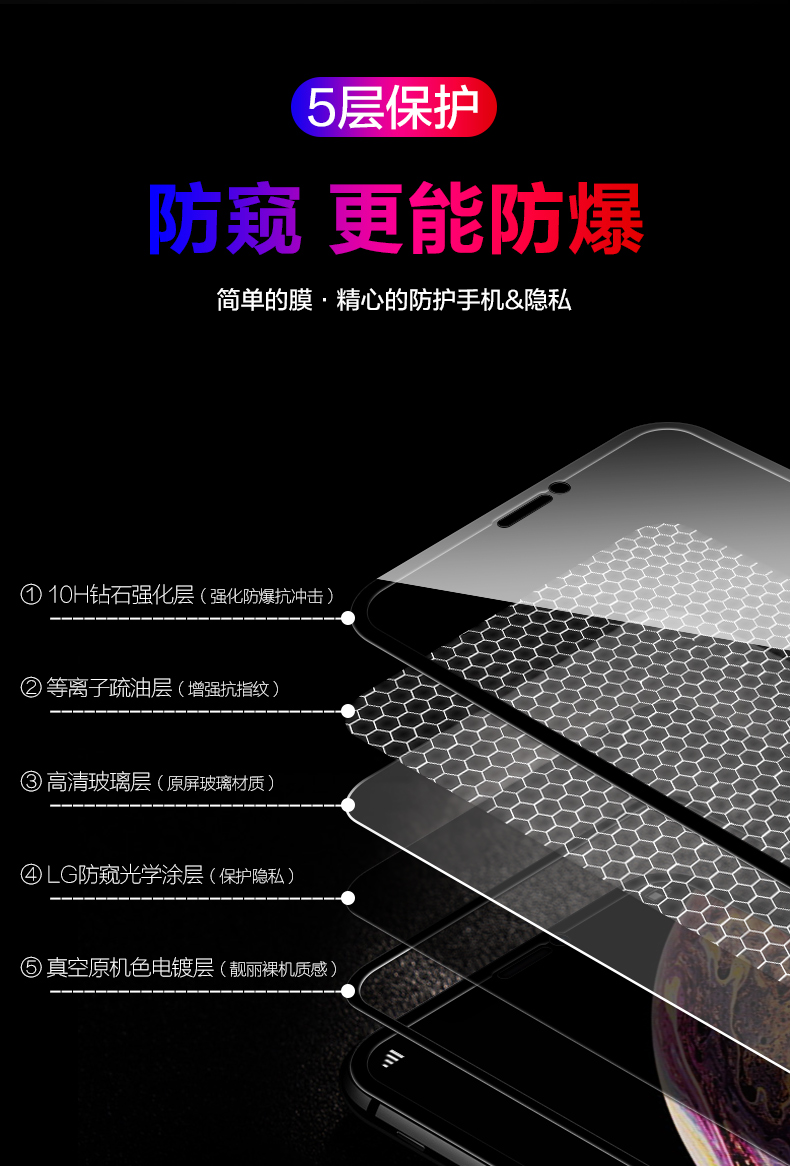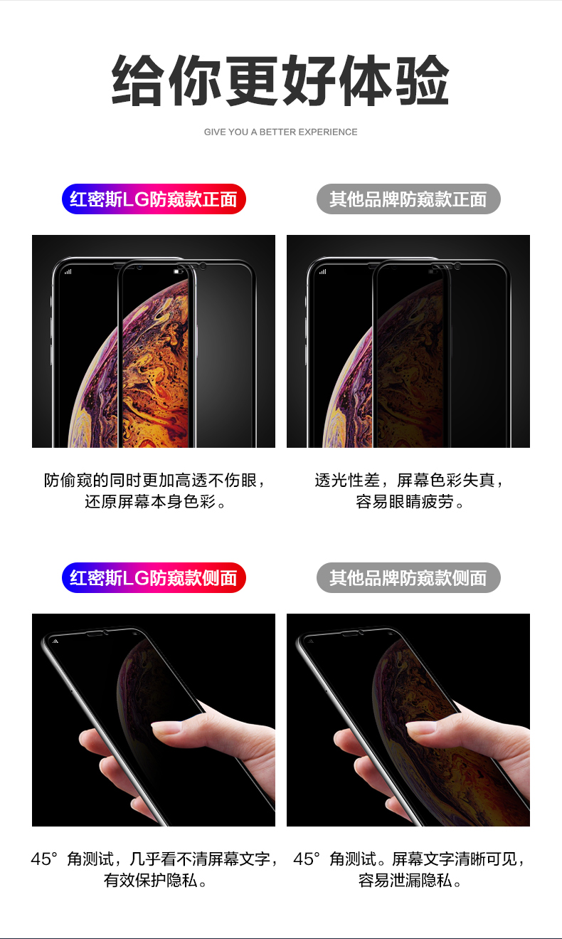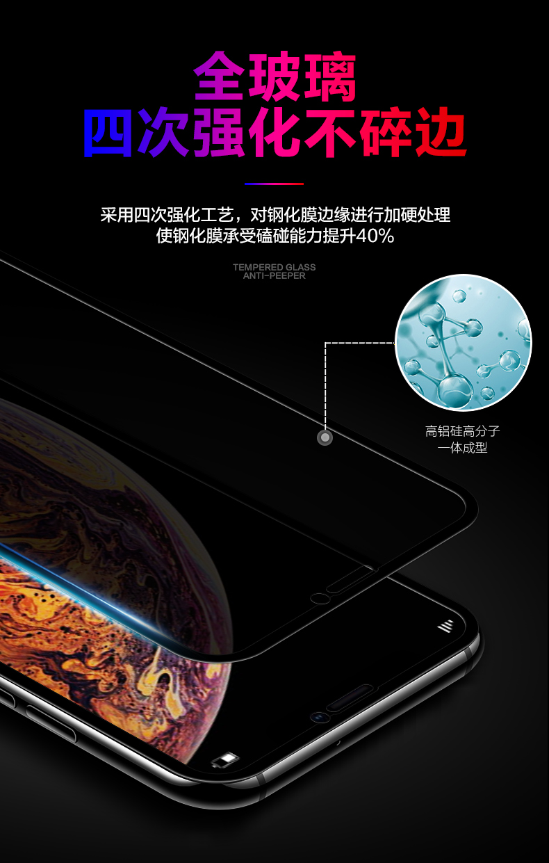 专为苹果手机量身定制,拒绝偷窥,保护隐私,耐磨防刮,原屏高清,自然视觉,电竞级钢化膜,不留指纹,手感超爽!