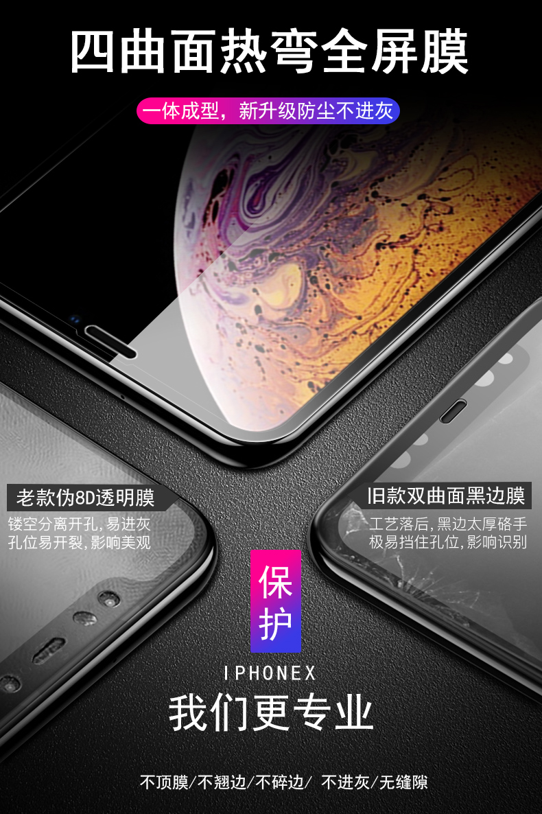 iphone11钢化膜全屏覆盖苹果11Pro全身6S不包边8P黑白边框XR专用Xmax防指纹超清Plus屏保玻璃X无白边手机贴膜