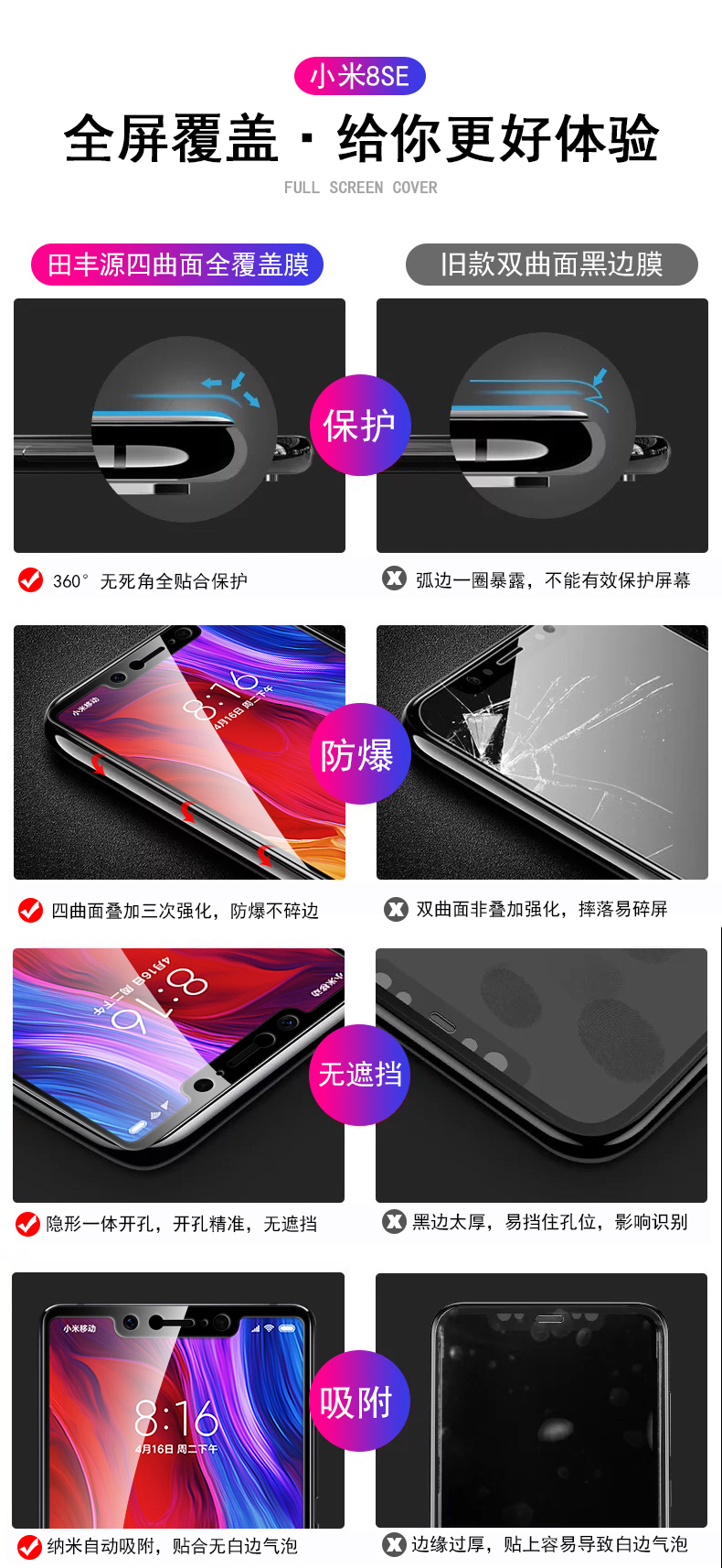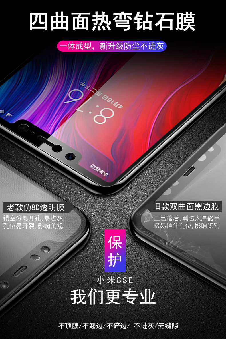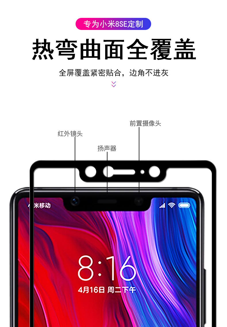 小米8SE钢化膜全屏覆盖MIUI小米全屏隐私抗蓝光全包边指纹不遮屏无白边防窥高清护眼防撞摔屏幕保护贴手机膜
