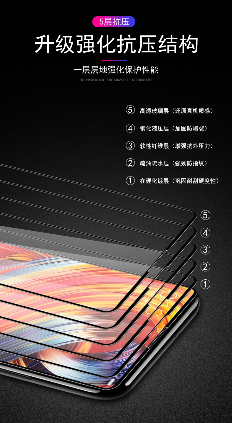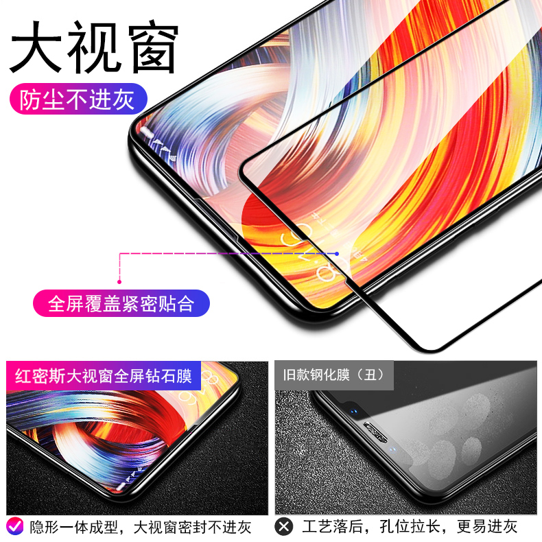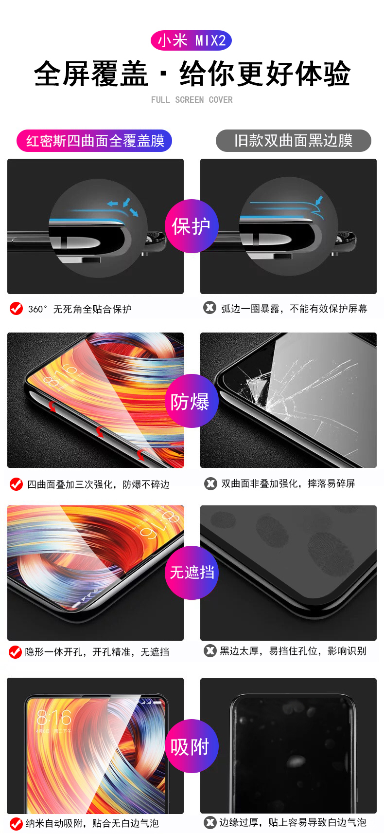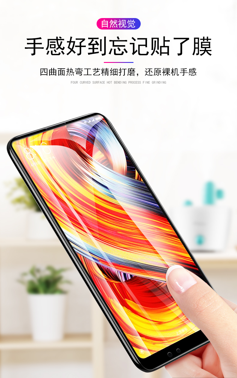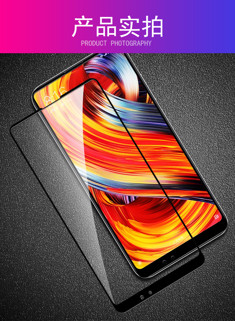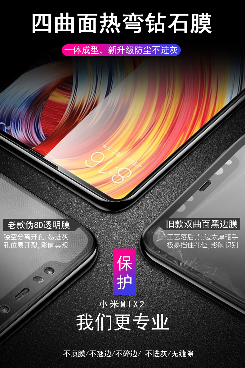 小米Mix2s钢化膜全屏mix3覆盖护眼Max3原装保护屏幕指纹2钻石黑边二全包边包膜防偷窥原厂神器无白边手机贴膜
