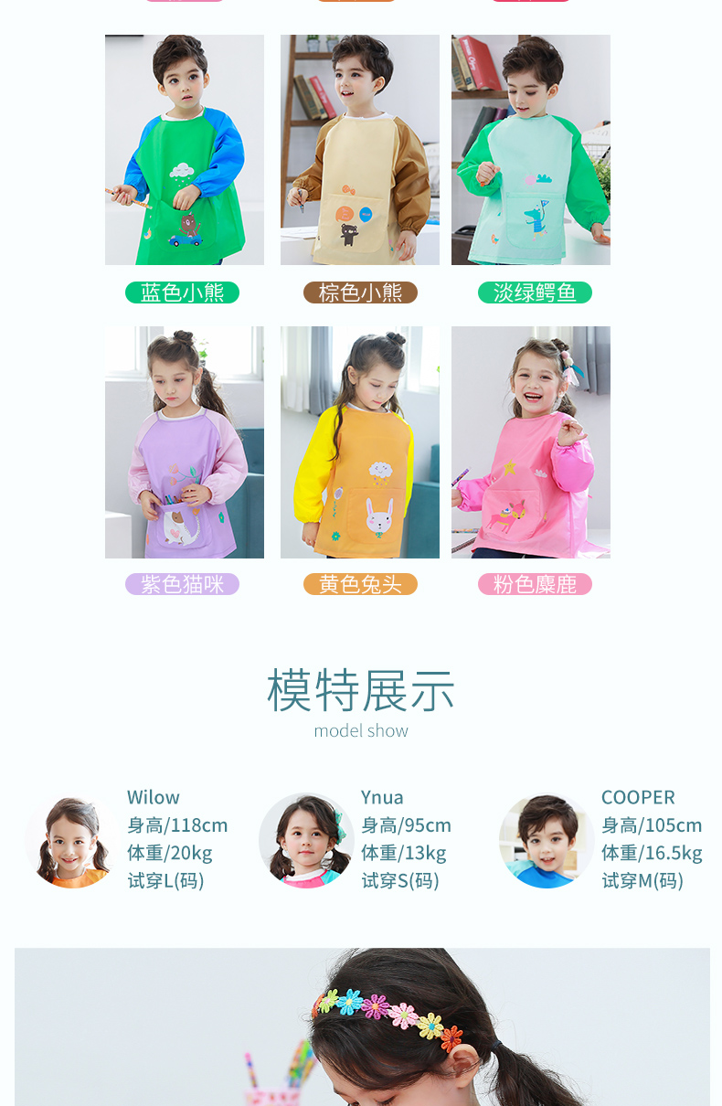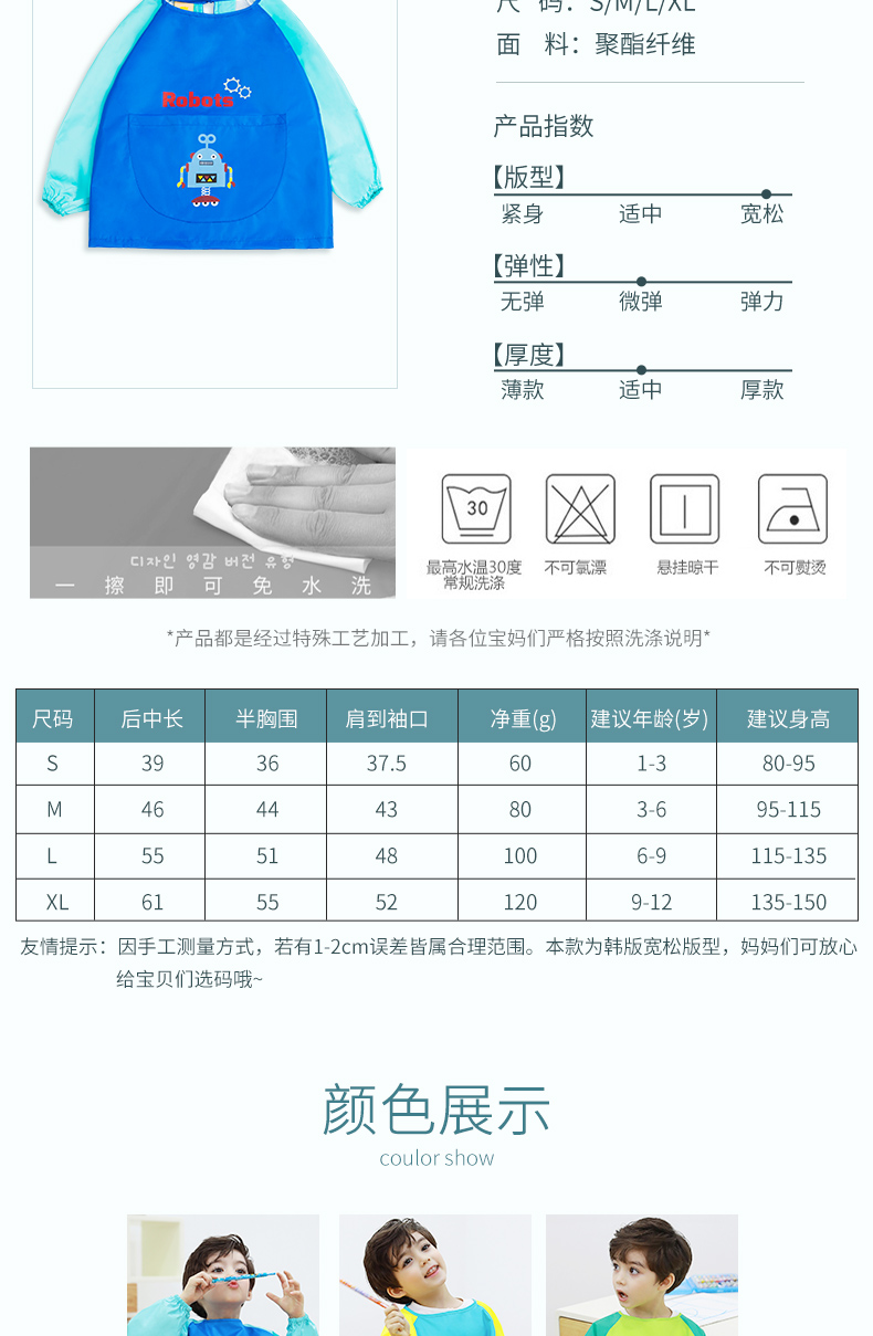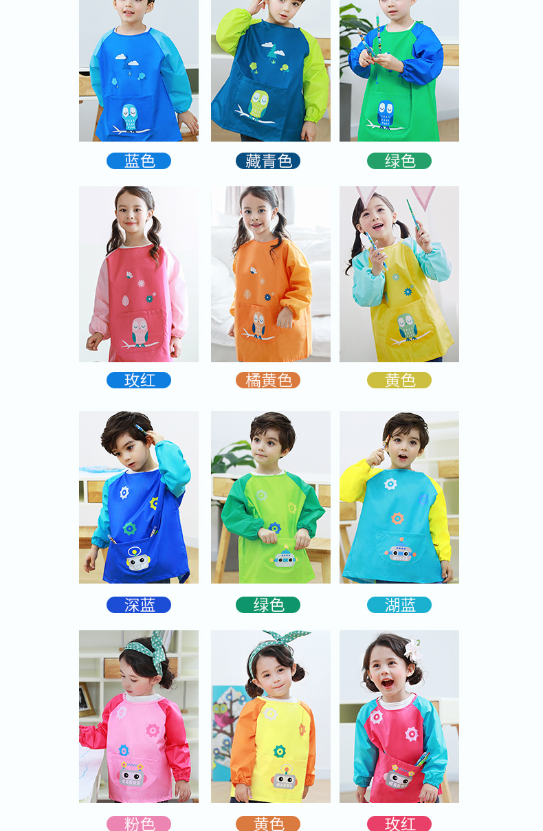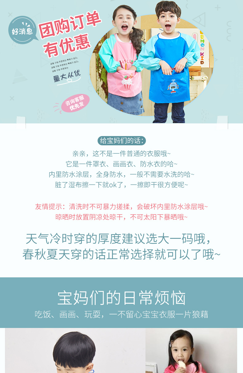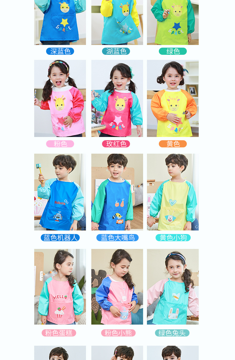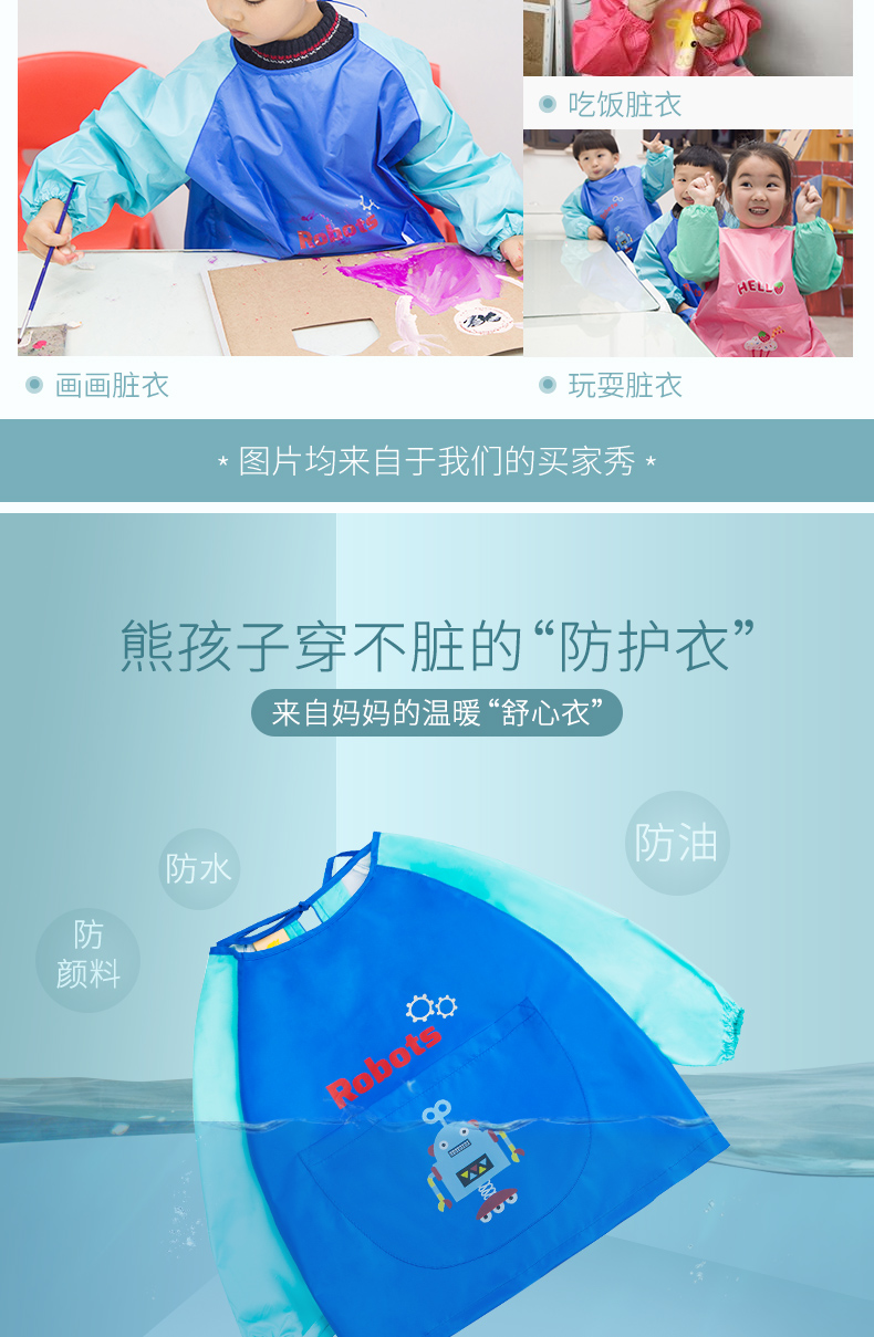 宝宝罩衣婴儿吃饭兜儿童绘画围兜妨脏画画衣围裙幼儿园防水反穿衣