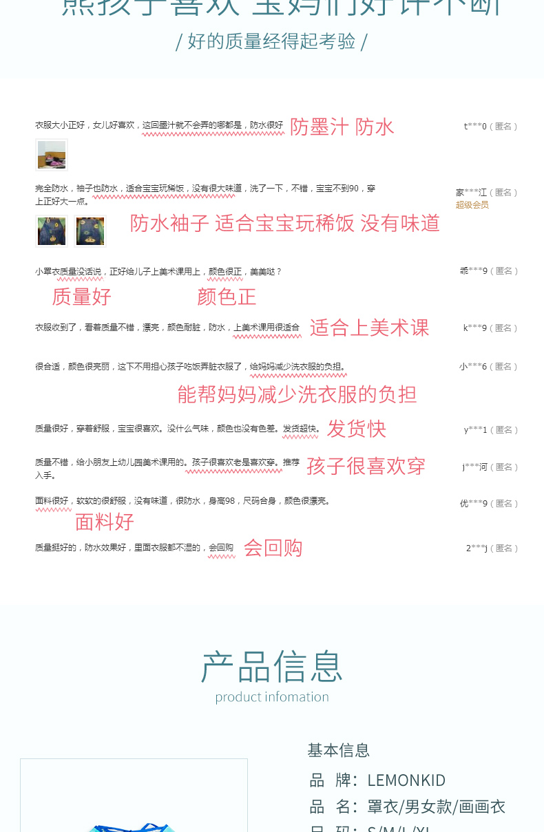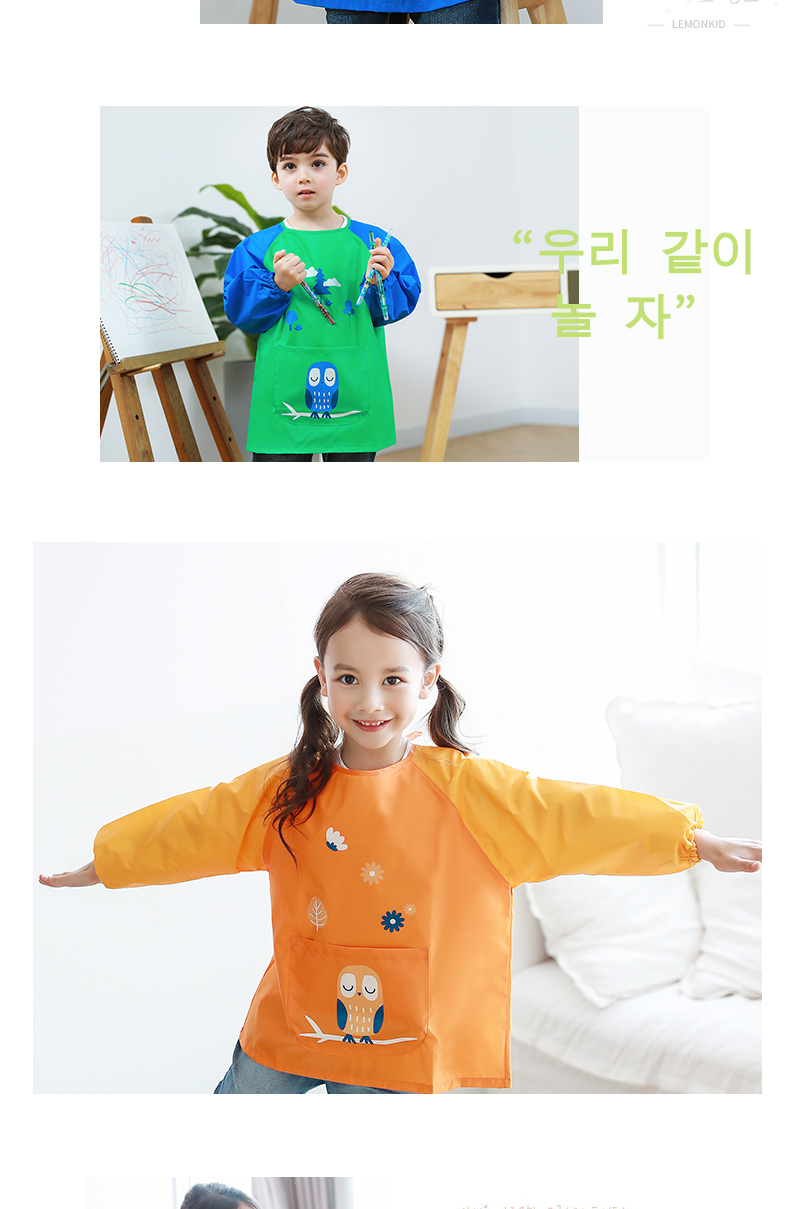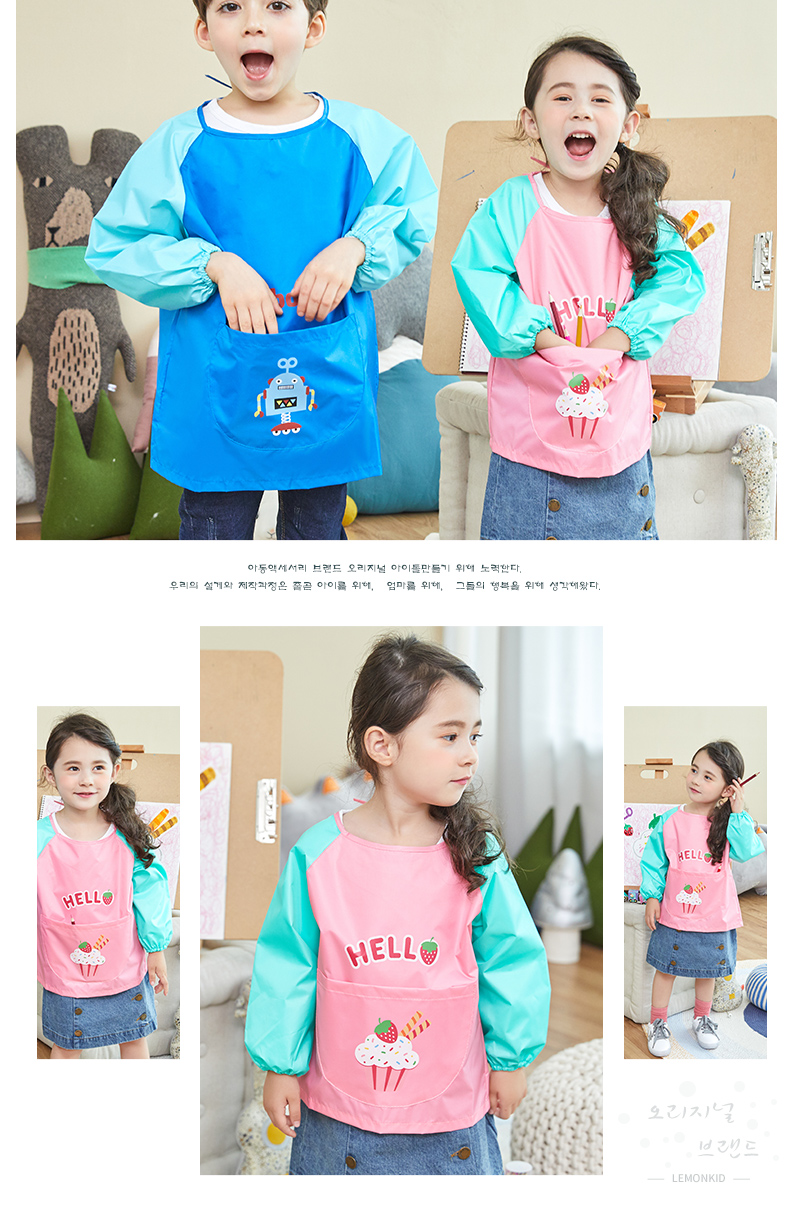 柠檬宝宝知名品牌,韩国原版设计,高密织材料,儿童吃饭绘画围兜,妨脏防水,反穿舒适,安全无甲醛,一擦即净,家家必备款,妈妈们都喜欢~【赠运费险】