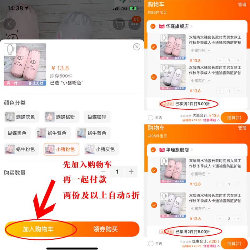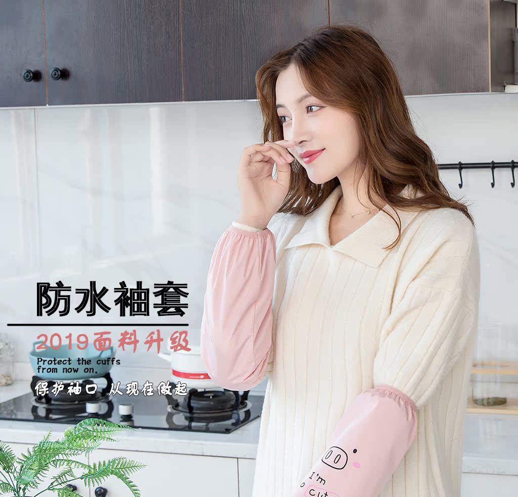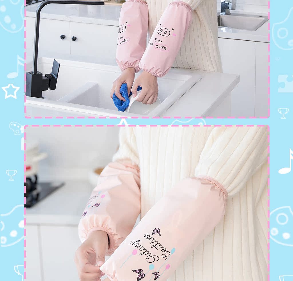 双层防水袖套长款时尚男女款工作秋冬季成人卡通袖套防脏护袖厨房,韩版防水防油长款袖套买一送一