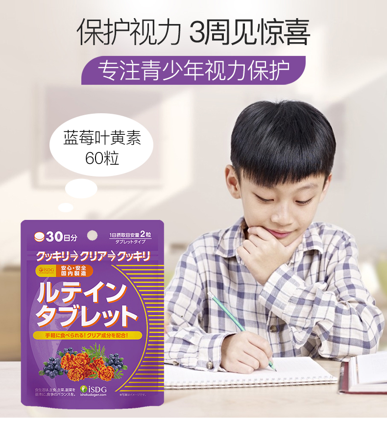 【买1送1】ISDG/日本进口蓝莓叶黄素压片糖60粒 缓解干涩视疲劳