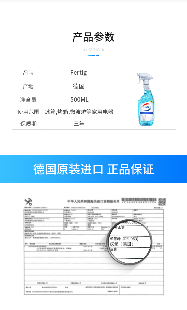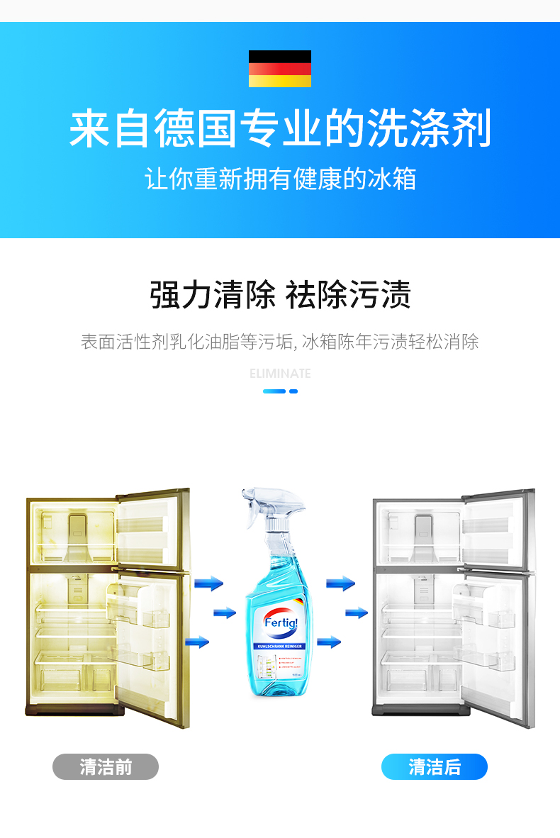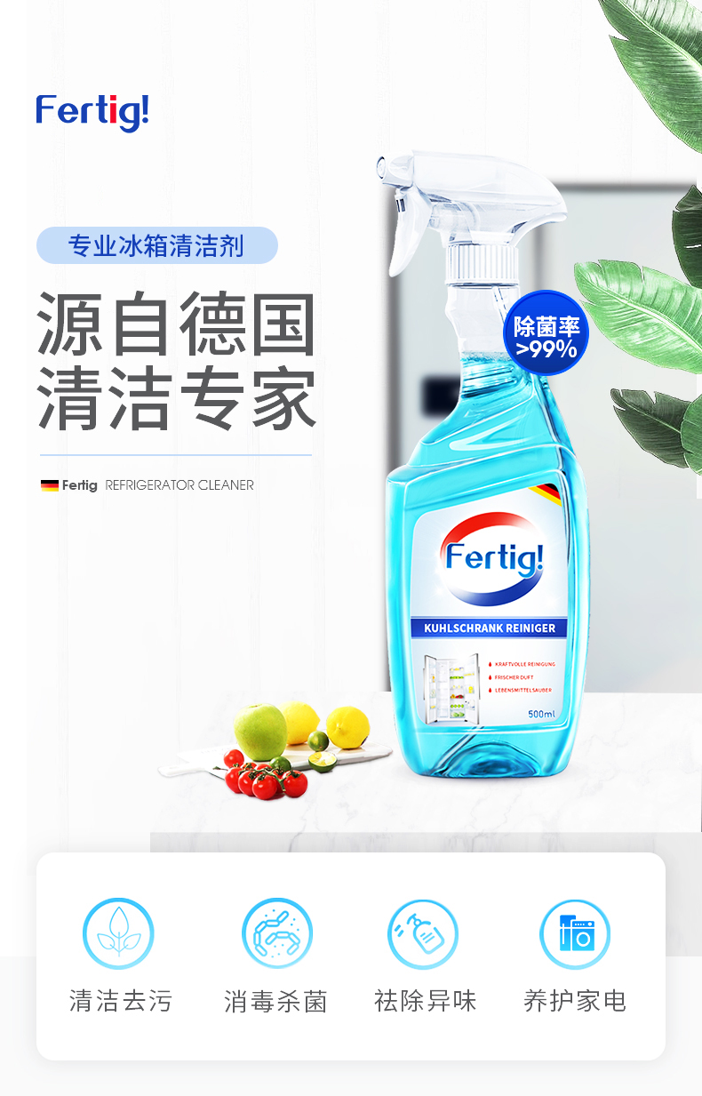 fertig德国进口清洗冰箱除味剂盒杀菌消毒除臭去味神器 500ml