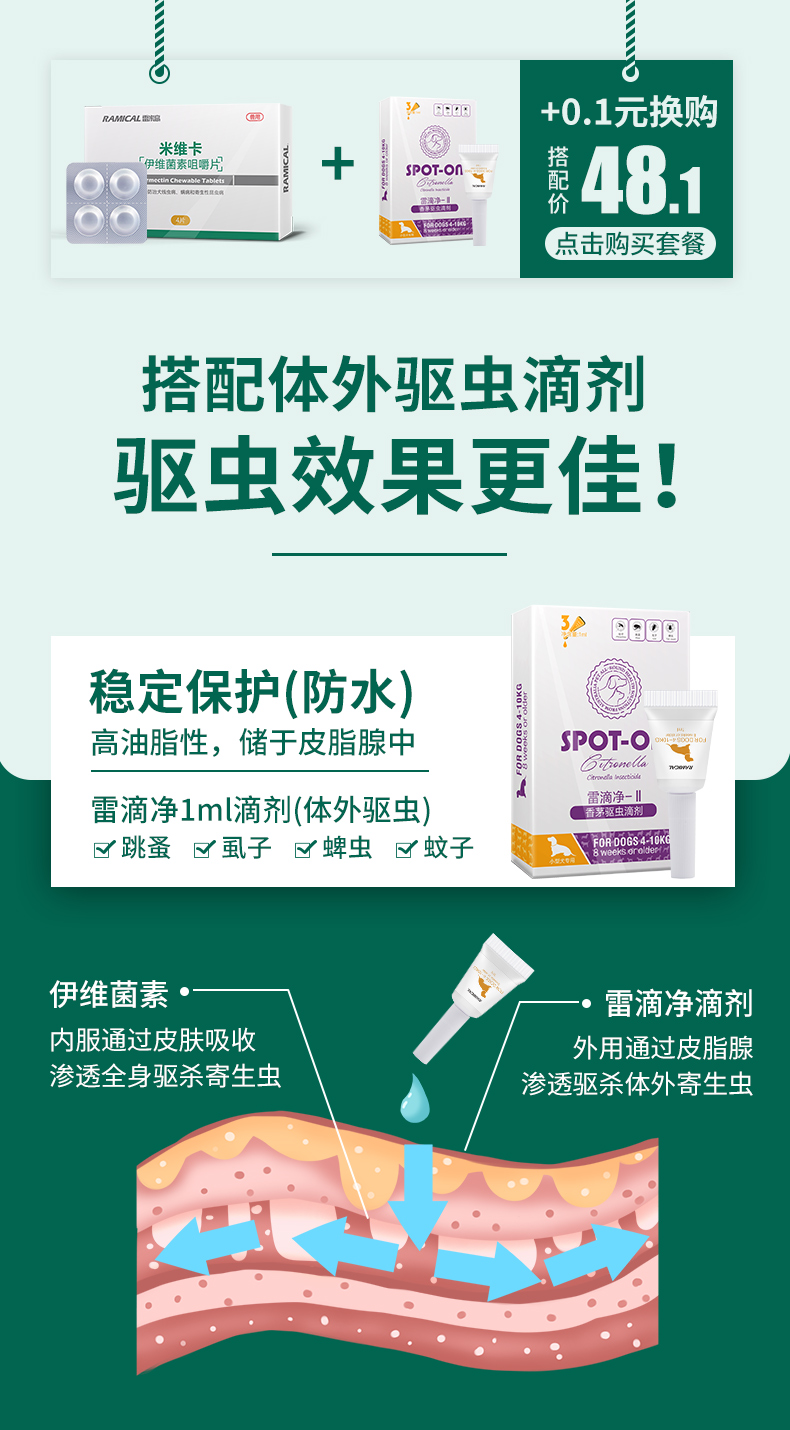 雷米高狗狗驱虫药体内外一体宠物驱虫打虫药去跳蚤除螨虫伊维菌素