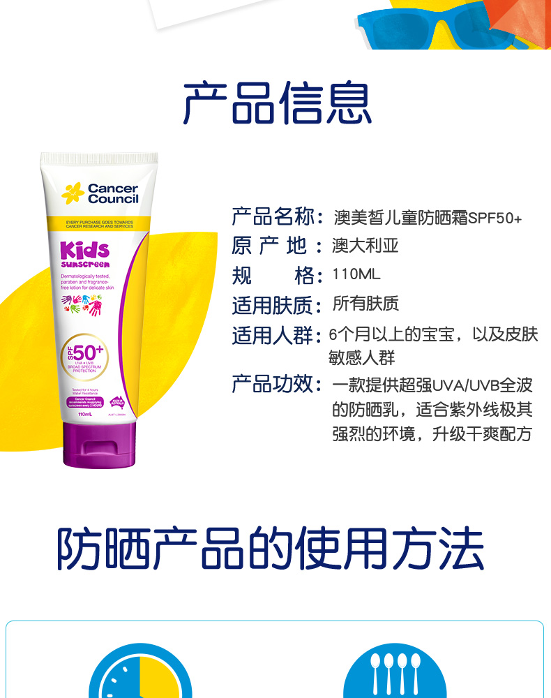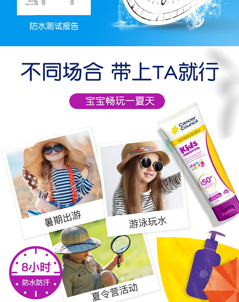 CancerCouncil澳美进口,皮肤科医生推荐,无香精防水更安全。连续多年被授予最受信赖防晒品牌,专业呵护肌肤卓效抗水功能。含量足,防晒持久,关注宝宝每一寸肌肤~【赠运费险】