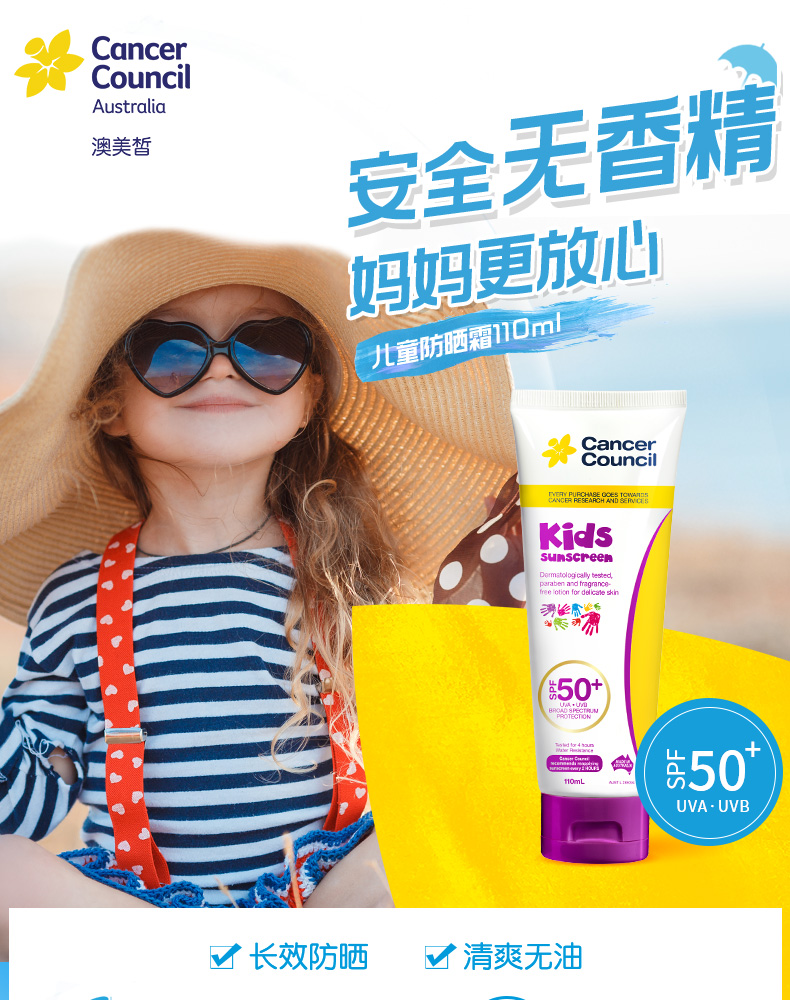 Cancer Council澳美晳儿童防晒霜防晒50+防紫外线女宝宝婴幼儿
