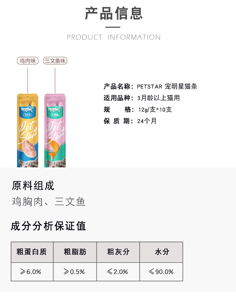 宠明星猫咪零食猫鲜条营养增肥猫条幼猫罐头湿粮小鱼干猫零食10支