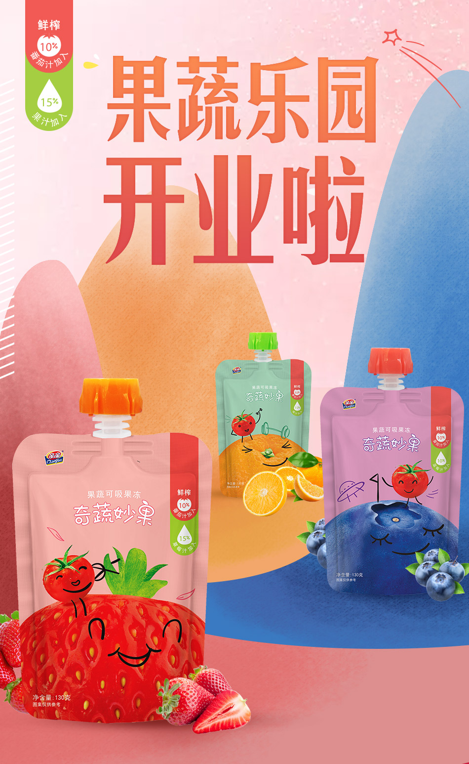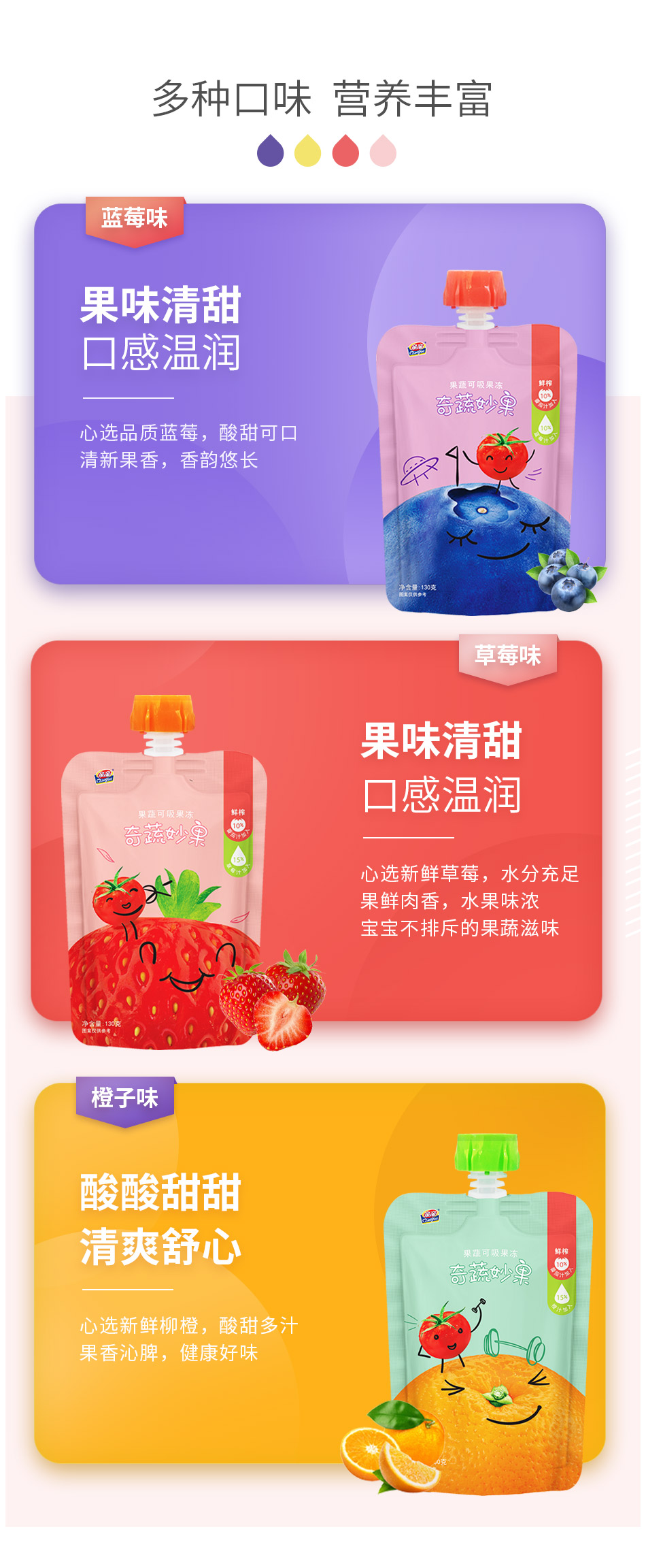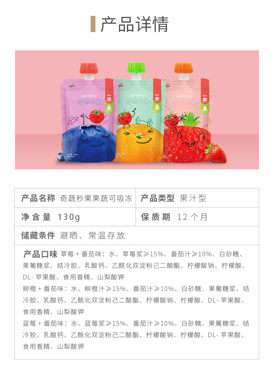 功能性果冻,低卡0脂肪,Q弹好吃无负担,补充身体所需维生素,矿物质,草莓+番茄+柳橙,清新果味!