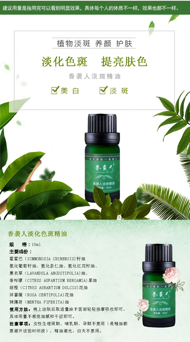 香袭人2代祛斑美白精油淡化色斑10ml去祛黄晒斑补水保湿嫩白滋润