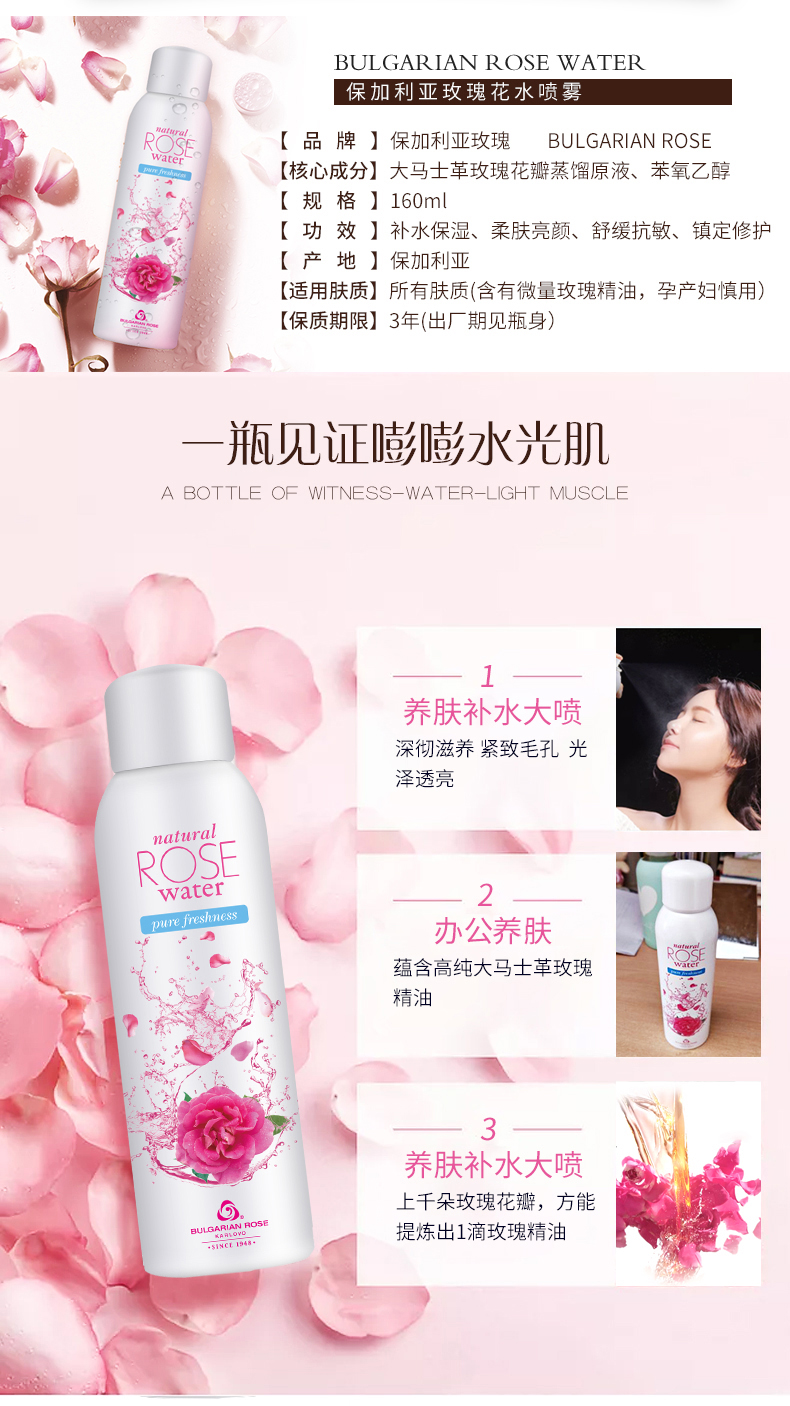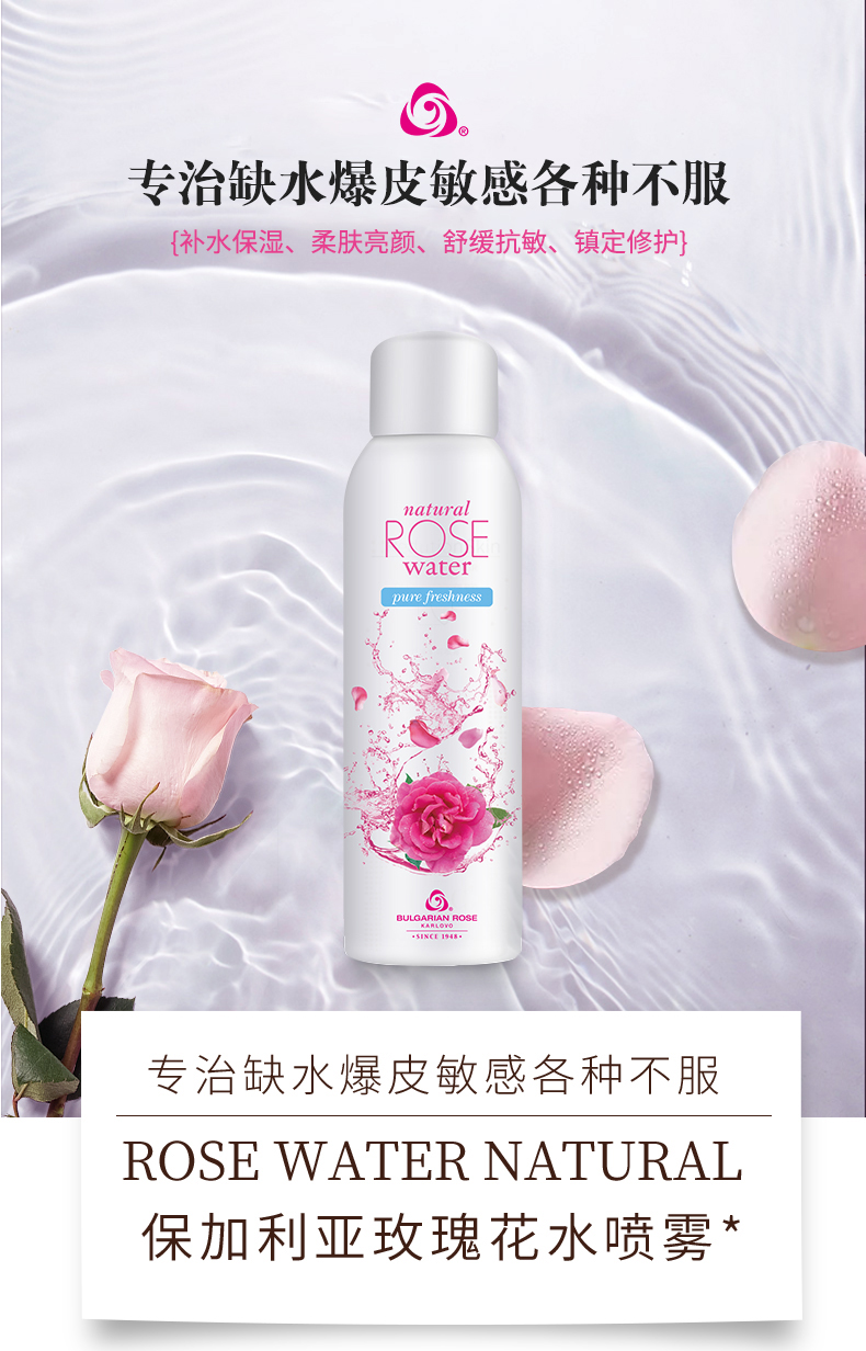保加利亚大马士革玫瑰花水纯露天然正品精油补水保湿爽肤水喷雾