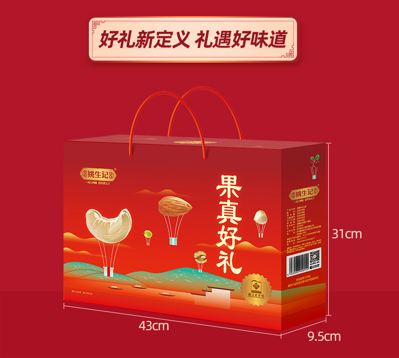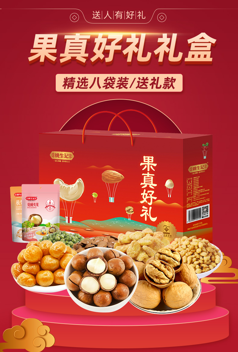 姚生记 送礼坚果礼盒1052g/8袋 每日坚果大礼包休闲零食年货礼盒