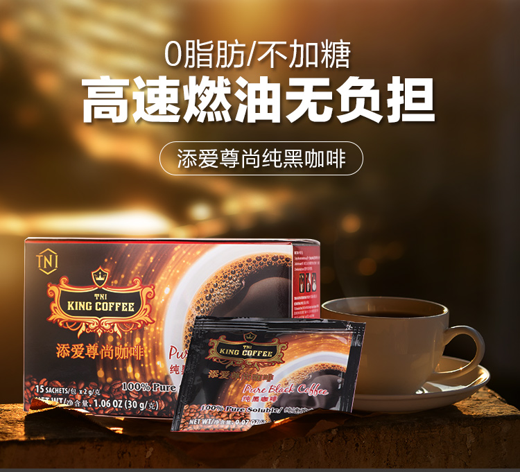 越南无蔗糖浓缩黑咖啡添爱尊尚纯黑咖啡无糖提神速溶咖啡粉15小包