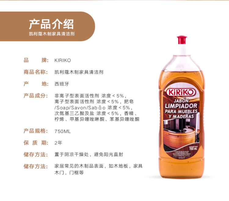 KIRIKO进口木地板清洁剂,光亮如新,清新持久,温和清洁,有效去污,让你的家具持久,地板亮如新