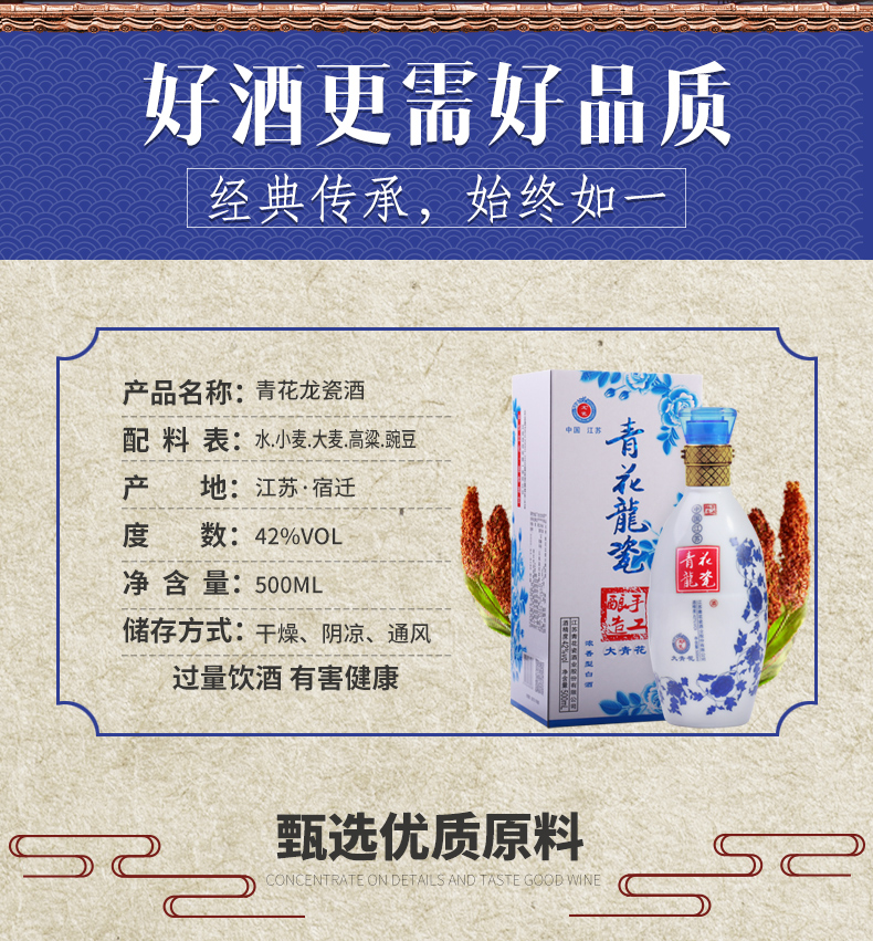 青花龙瓷特价白酒原浆整箱浓香型42度500ml*6瓶礼盒装