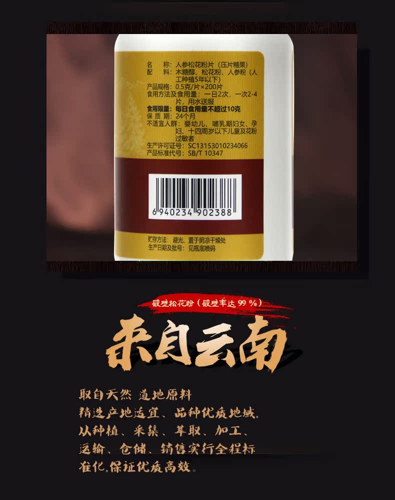新品】松花粉纯正品破壁马尾云南马尾松无糖松花食用人参松花粉片