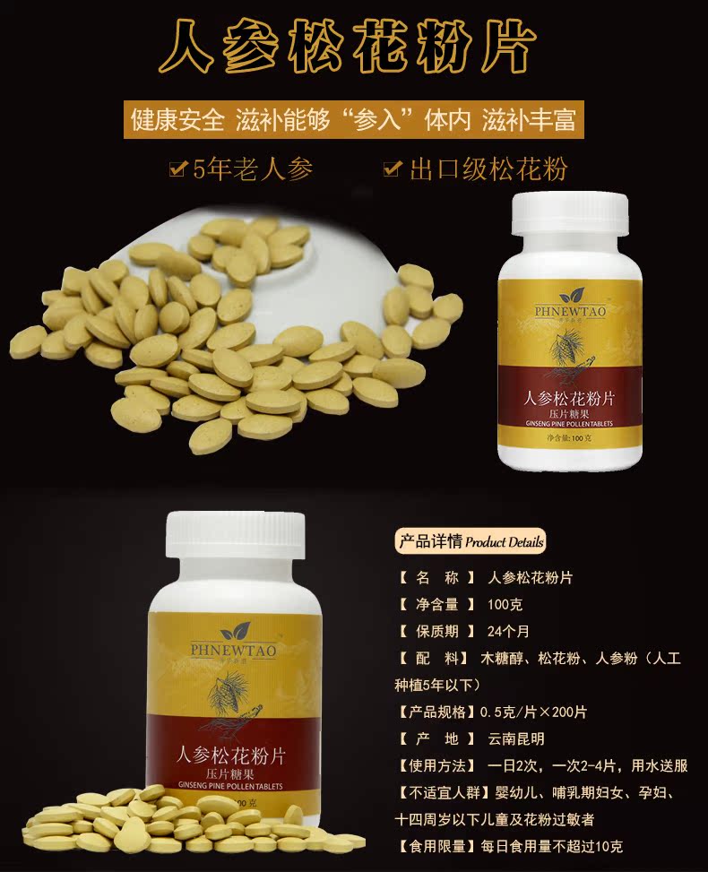 滋补新品!人参松花粉片,采用东北5年老人参、出口级松花粉做材料,营养价值丰富,健康安全,滋补深入体内!活动价只要29.9,快抢!【赠运费险】