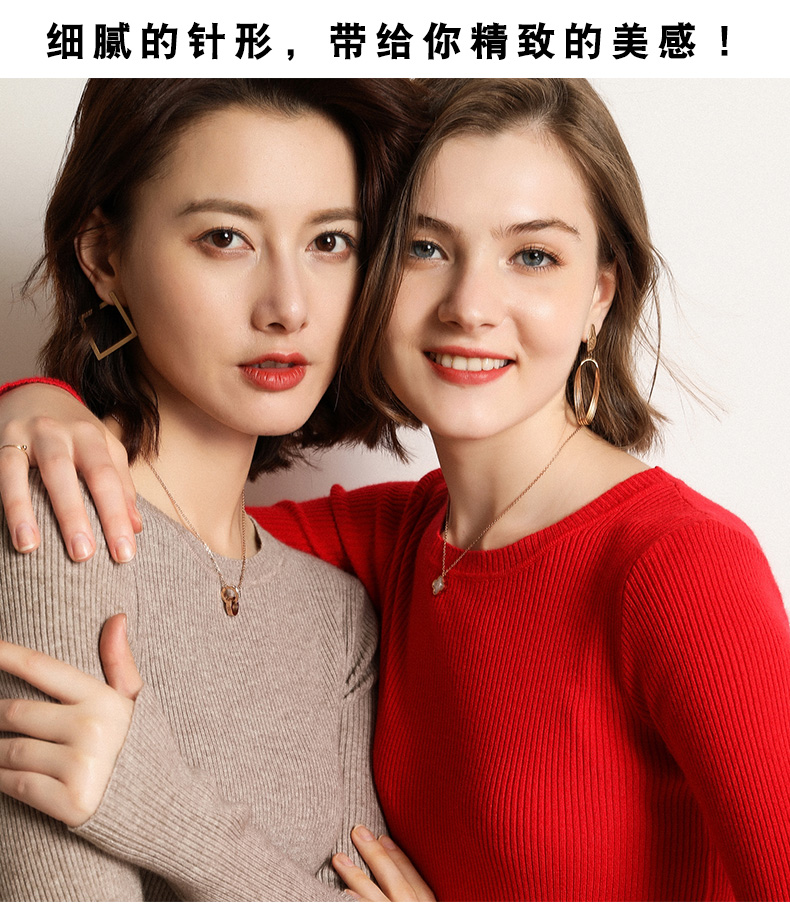 圆领毛衣女长袖内搭打底衫2019秋冬新款短款修身薄款针织衫