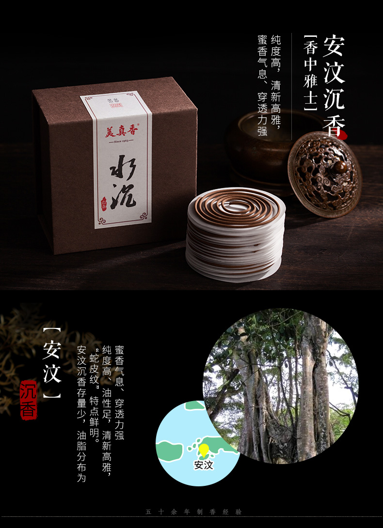 美真香 天然水沉香纯盘香乌沉 老山檀香家用室内熏香净化卧室空气