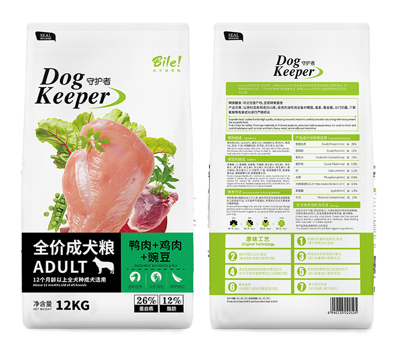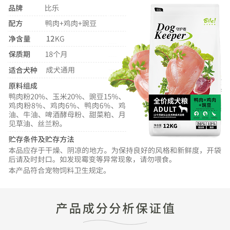 比乐通用型鸡鸭肉豌豆12kg狗粮采用原味工艺加工,添加鸭肉,鸡肉,豌豆,果蔬颗粒。回归原味,给狗狗zui好的爱。