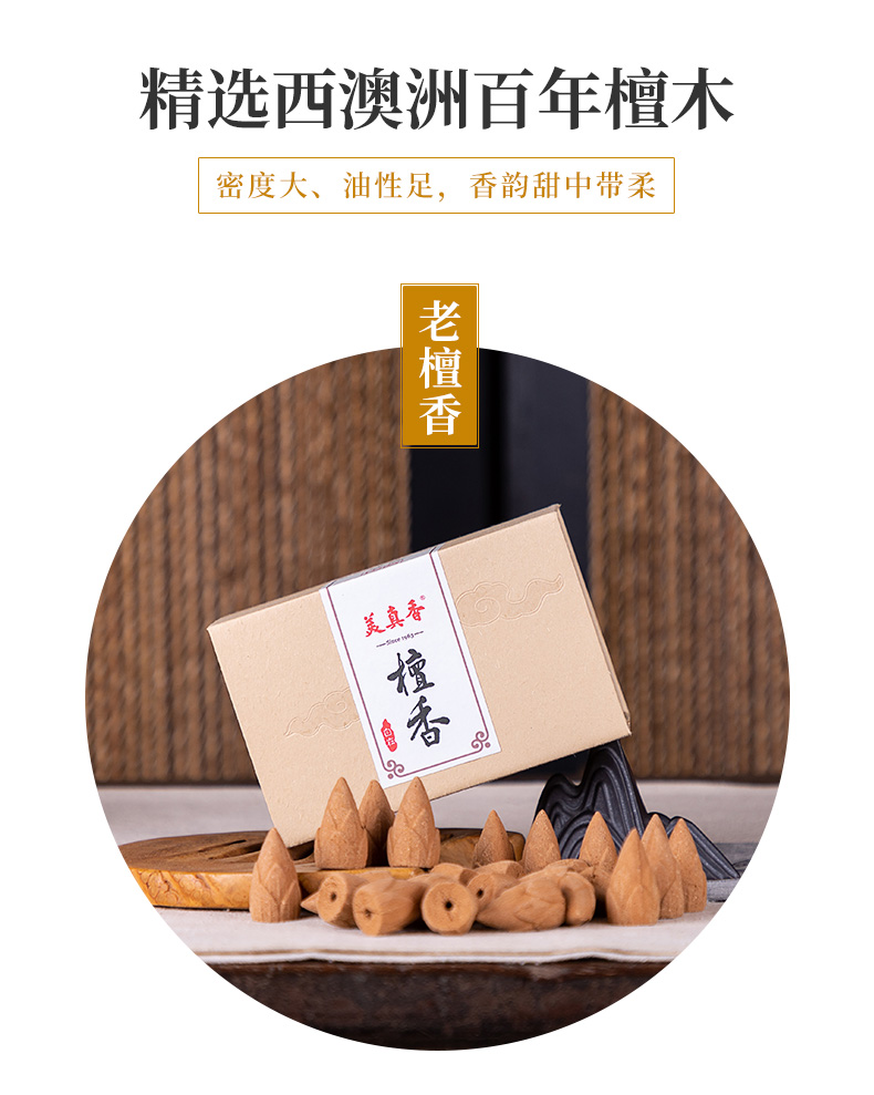 美真香檀香倒流香粒塔香天然纯沉香熏香香薰檀香家用室内净化空气